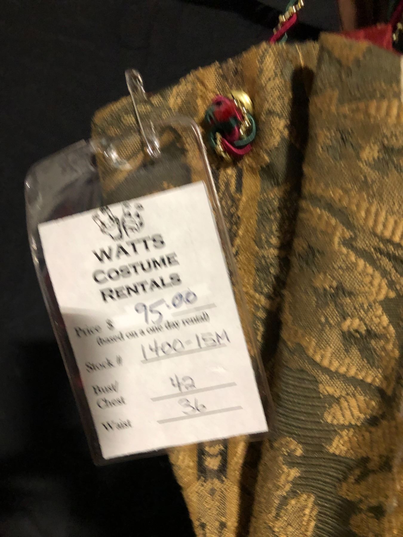 GREEN/GOLD 1400'S COSTUME, DAILY RETAIL $95.00