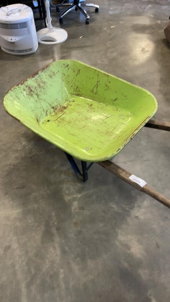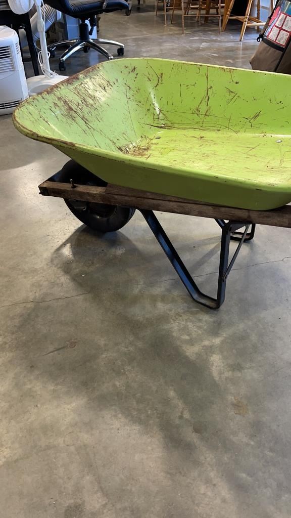 GREEN METAL WHEELBARROW