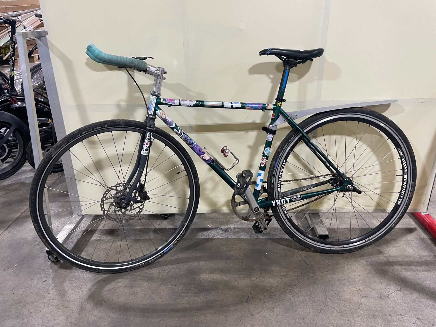 GREEN NO NAME SINGLE SPEED FIXED GEAR ROAD BIKE WITH FRONT DISC BRAKE