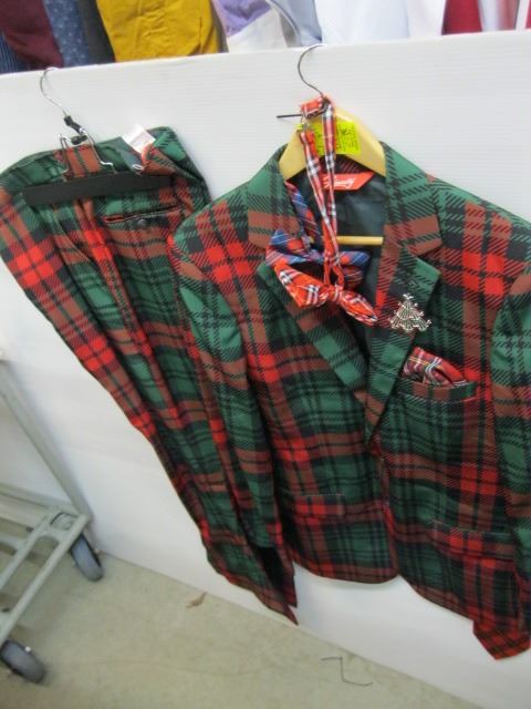 GREEN & RED PLAID SUIT JACKET WITH TIES & PANTS