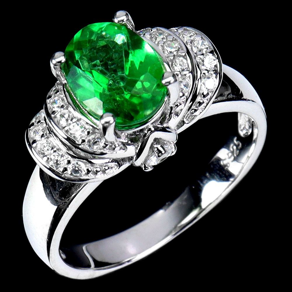 GREEN TOPAZ RING IN 14K WHITE PLATED GOLD OVER 925 STERLING SILVER -SIZE 8 - APPRAISED REPLACEMENT VALUE