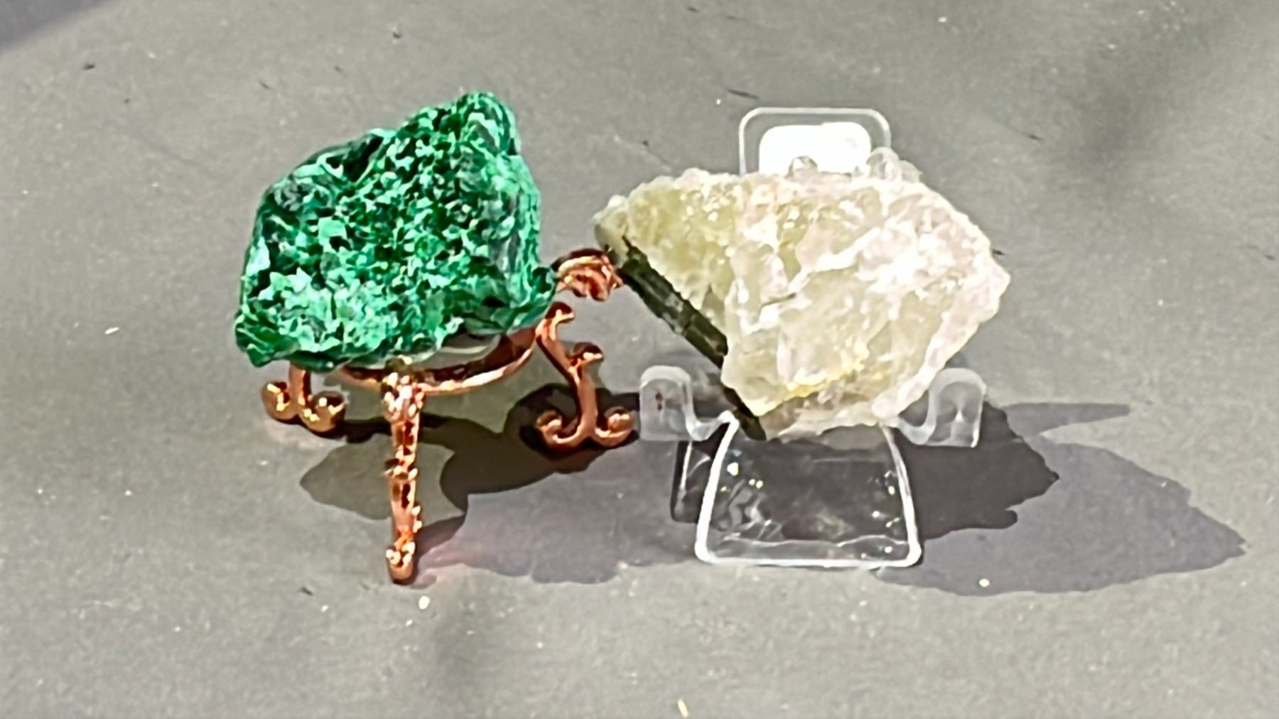 GREEN TOURMALINE IN MATRIX RETAIL $380 AND VELVET MALACHITE RETAIL $350