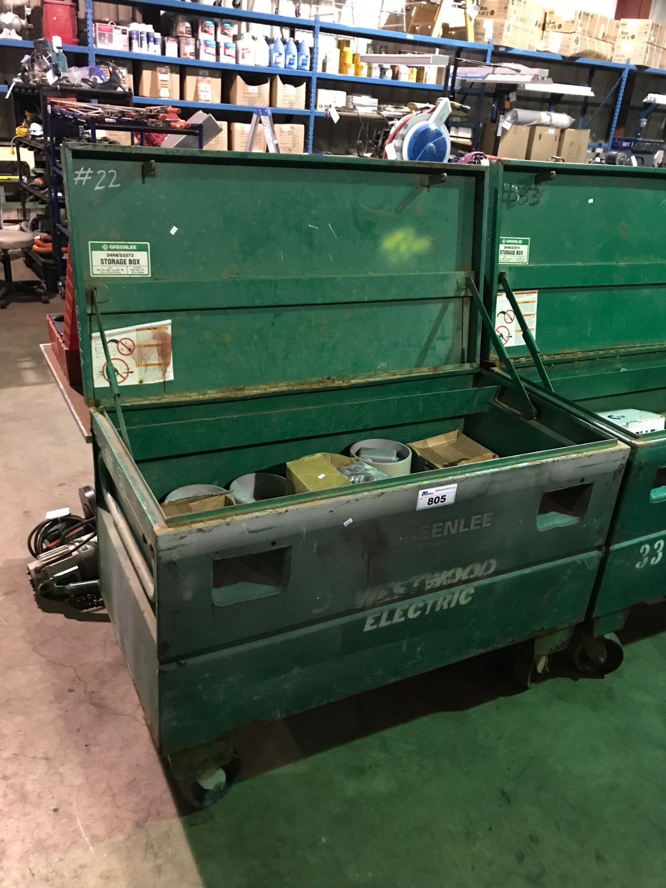 GREENLEE 2448/23273 24"X48"X24" 16.0 CU FT JOB SITE STORAGE BOX WITH CONTENTS
