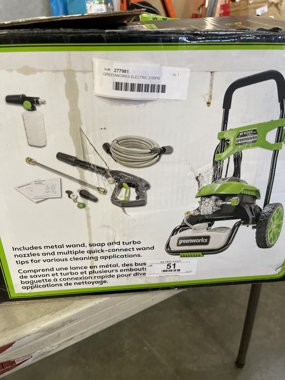 GREENWORKS ELECTRIC 2100PSI PRESSURE WASHER
