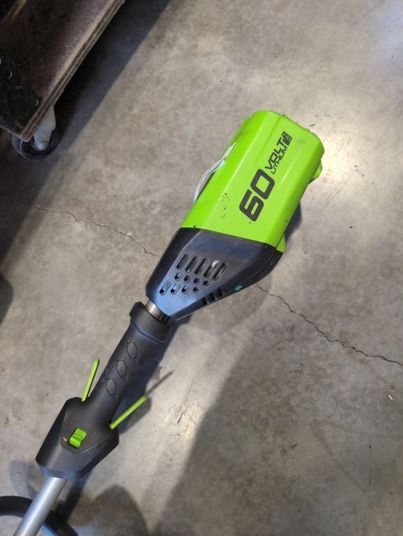 GREENWORKS PRO 60V ELECTRIC WEED EATER WITH BATTERY, DEAD NO CHARGER