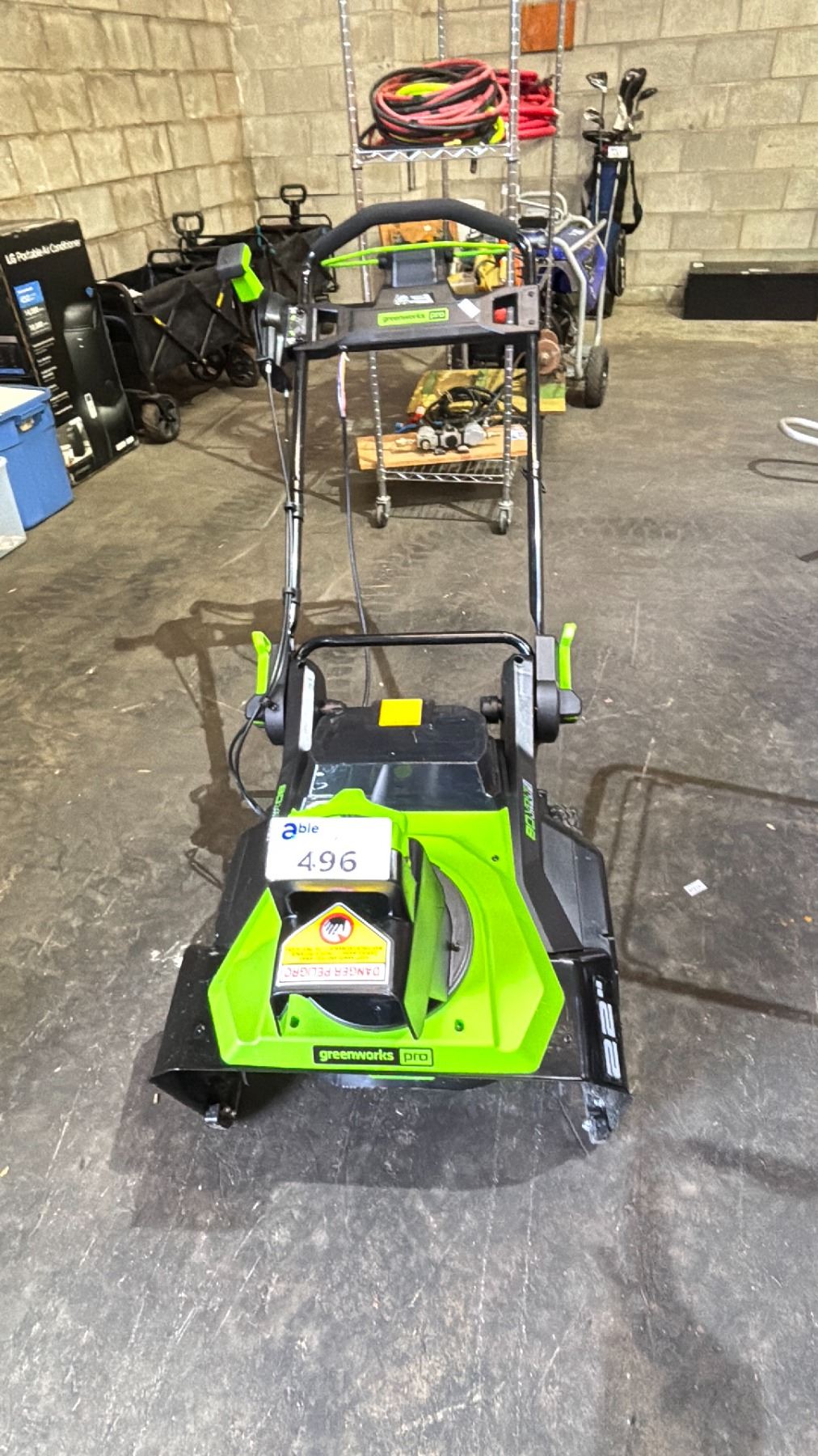 GREENWORKS PRO CORDLESS SNOW THROWER WITH 1 BATTERY (NO CHARGER, UNKNOWN WORKING CONDITION)
