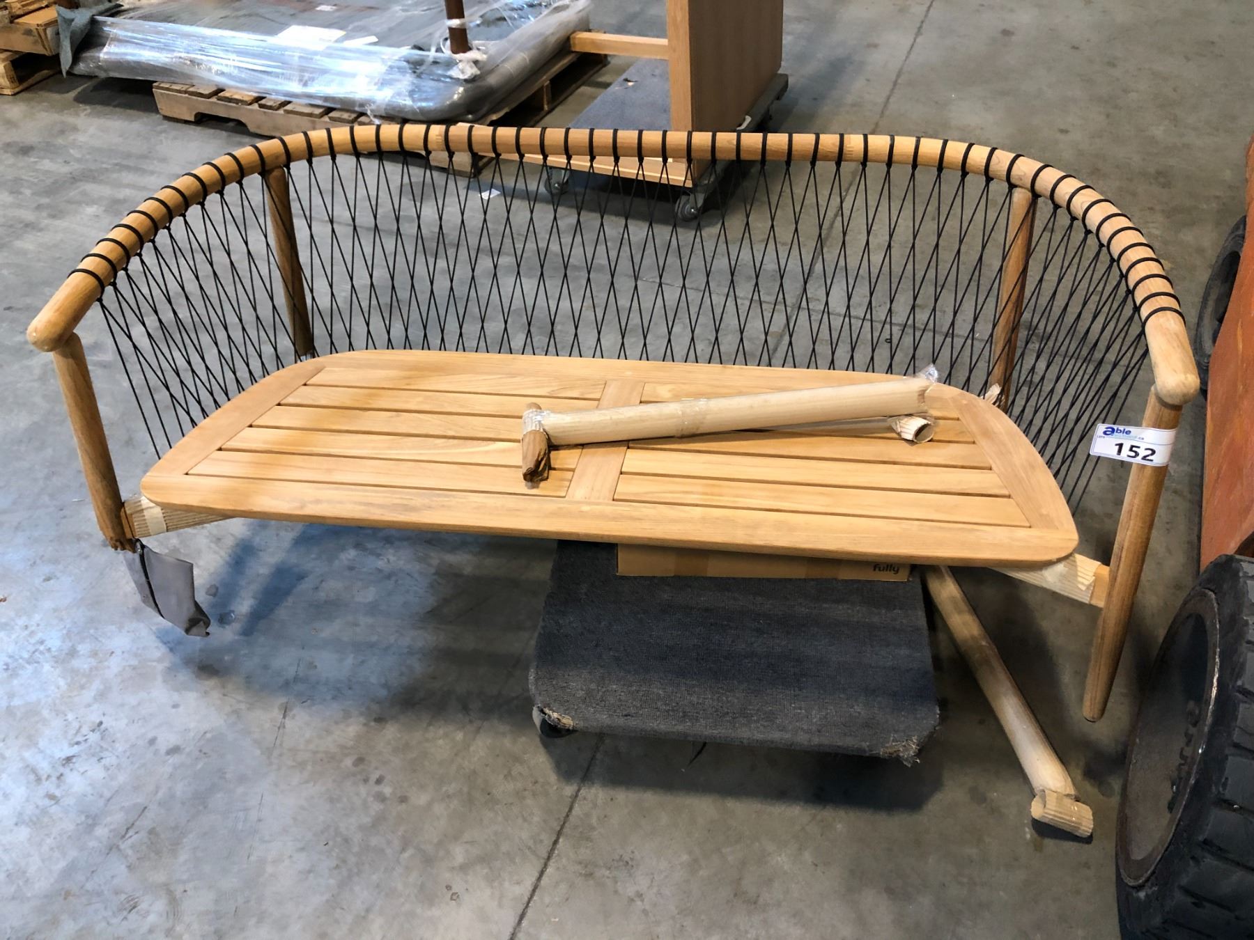 GREIGER CROSS HATCH GREY 2 SEAT SOFA WITH BROKEN FRONT LEG 61"W