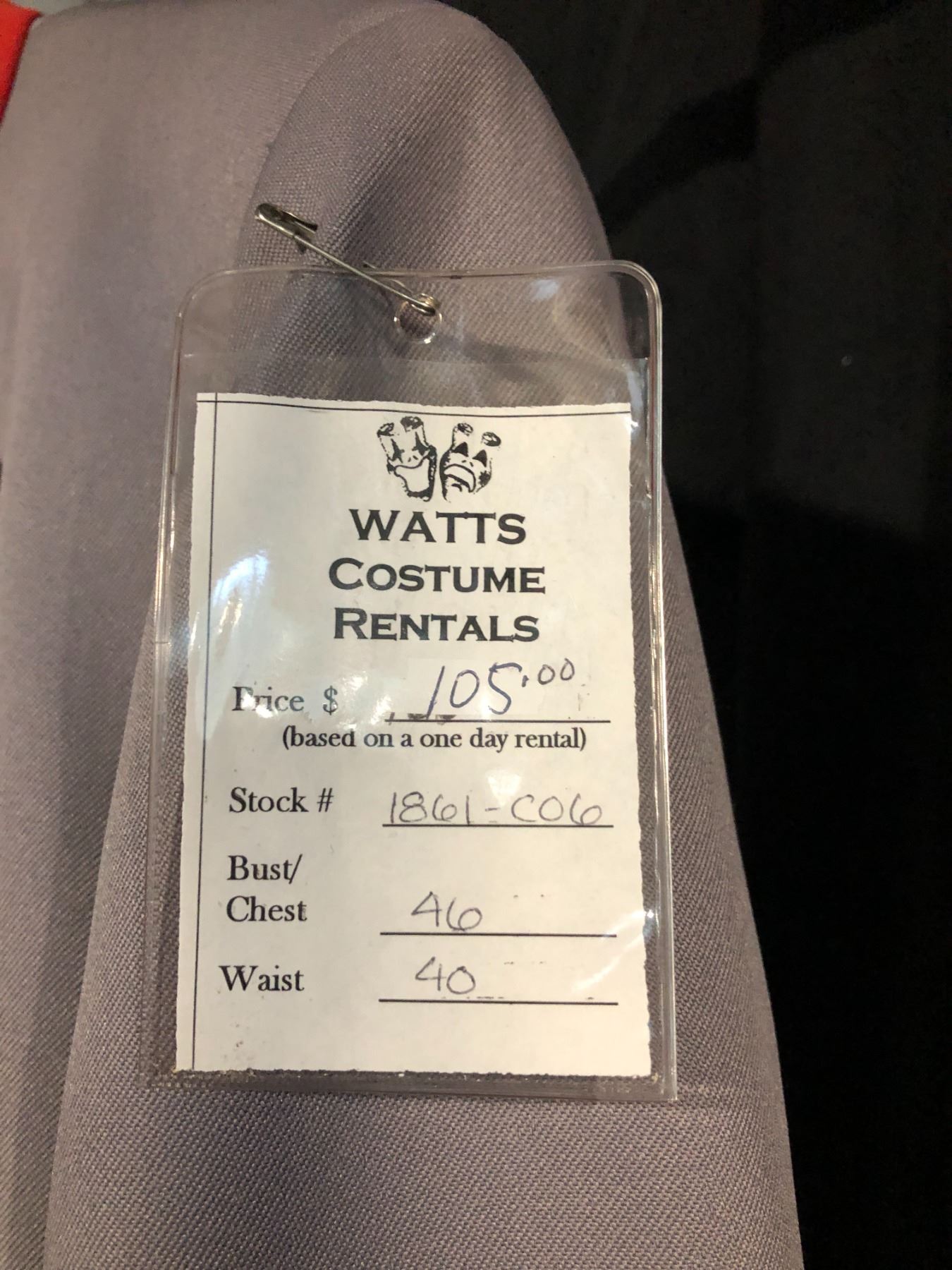 GREY 1861 MILITARY UNIFORM COSTUME, DAILY RENTAL $105.00