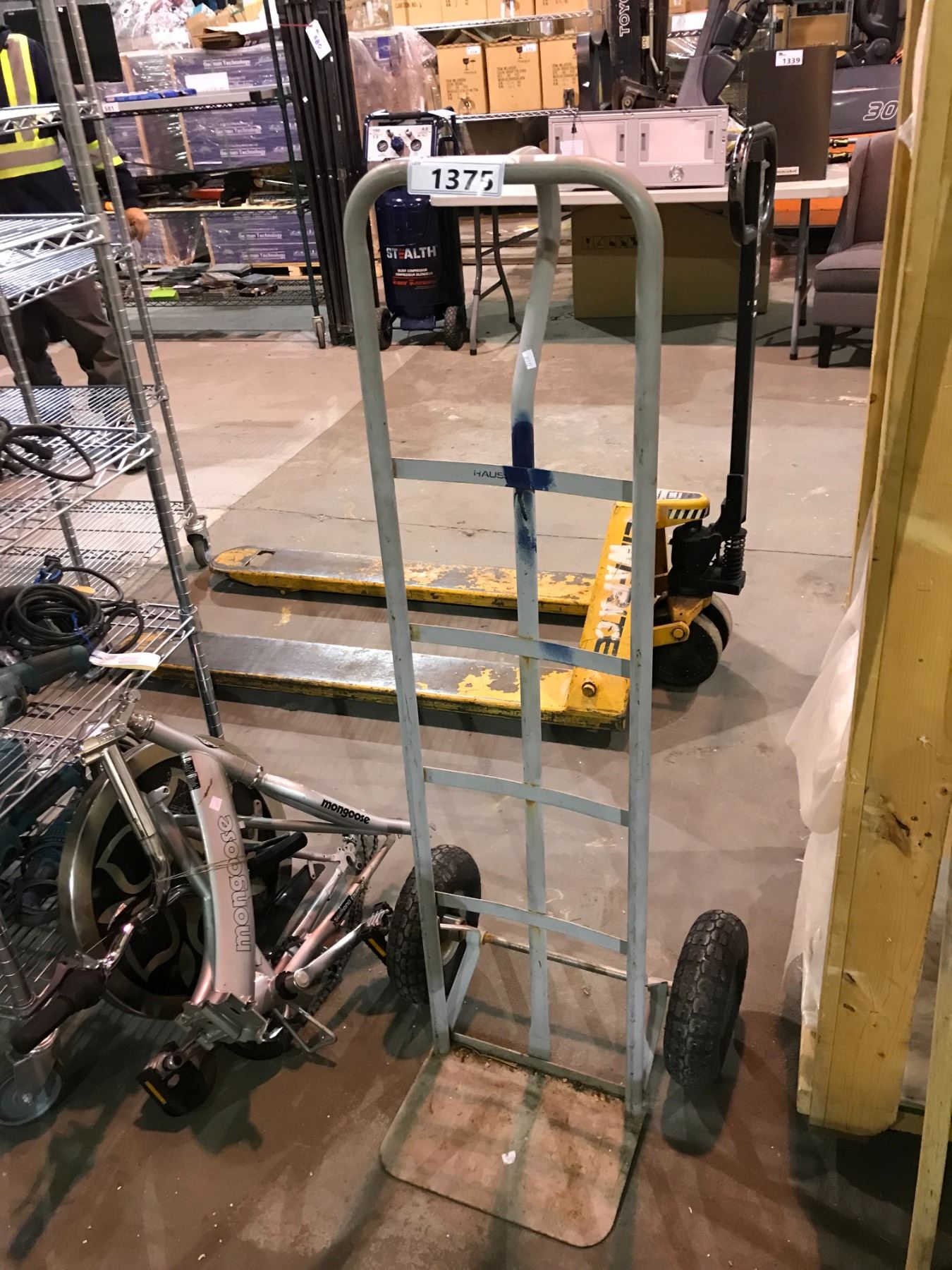 GREY 2 WHEEL DOLLY AND MONGOOSE FOLDING EXERCISE BIKE MISSING PARTS