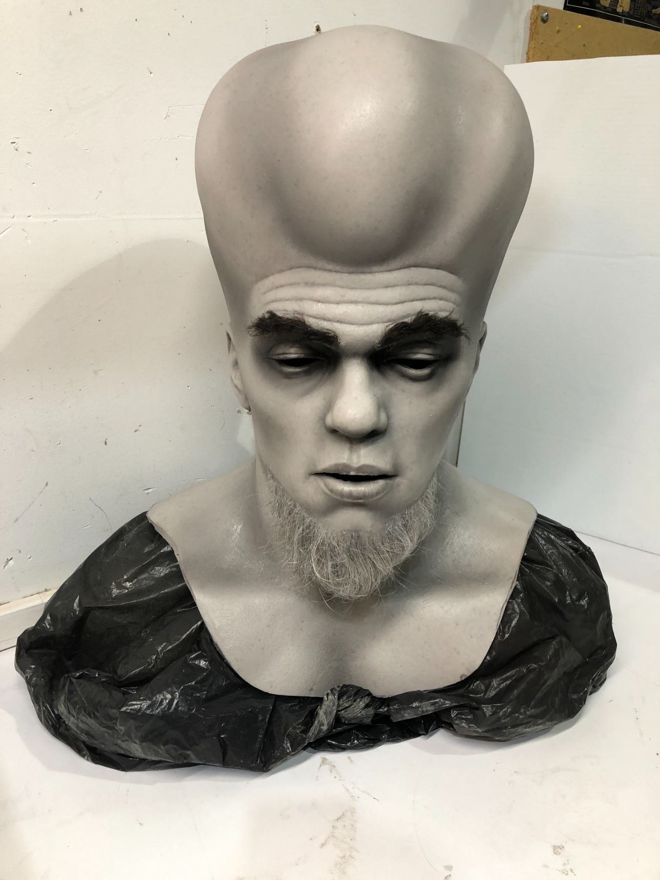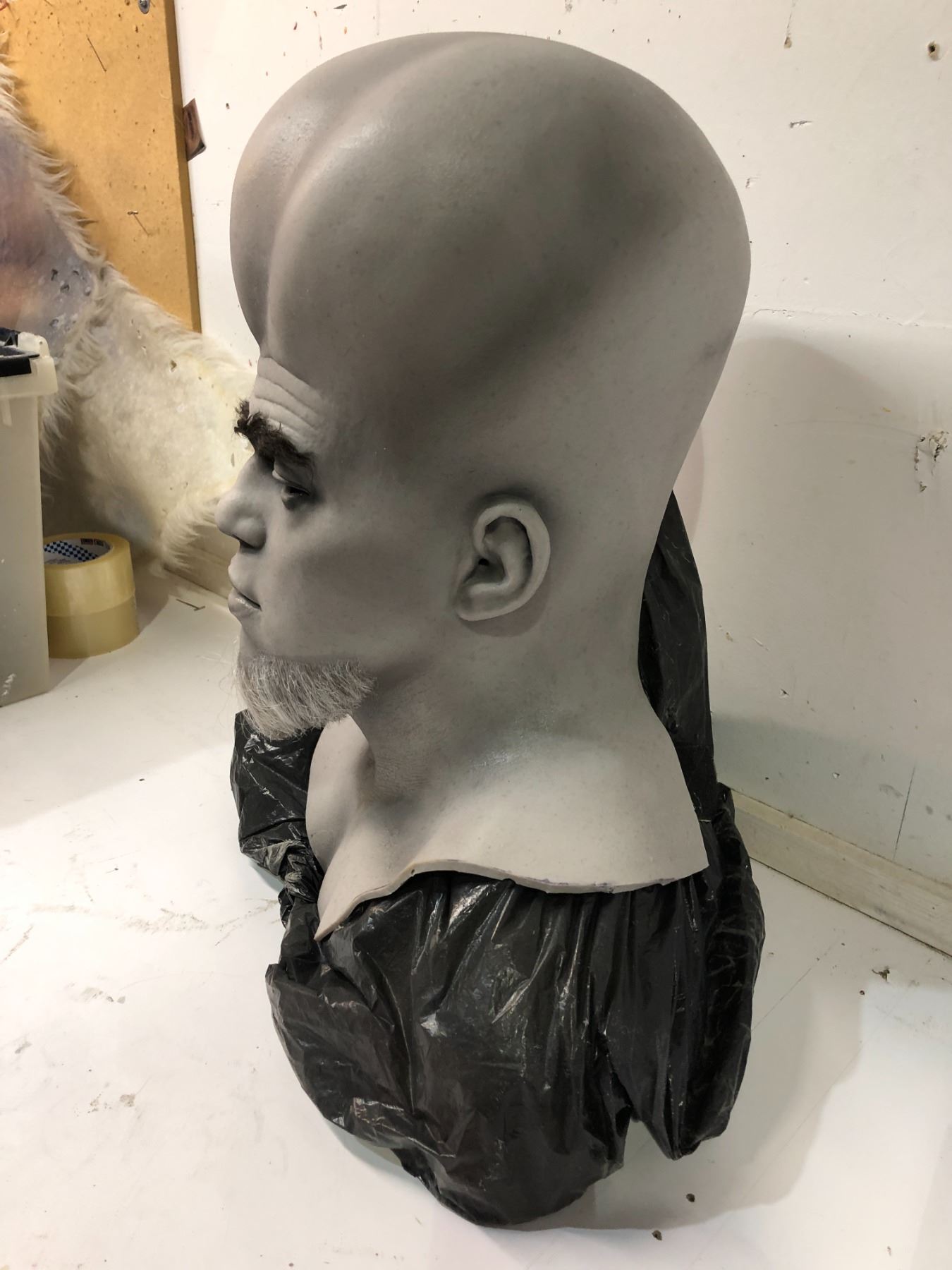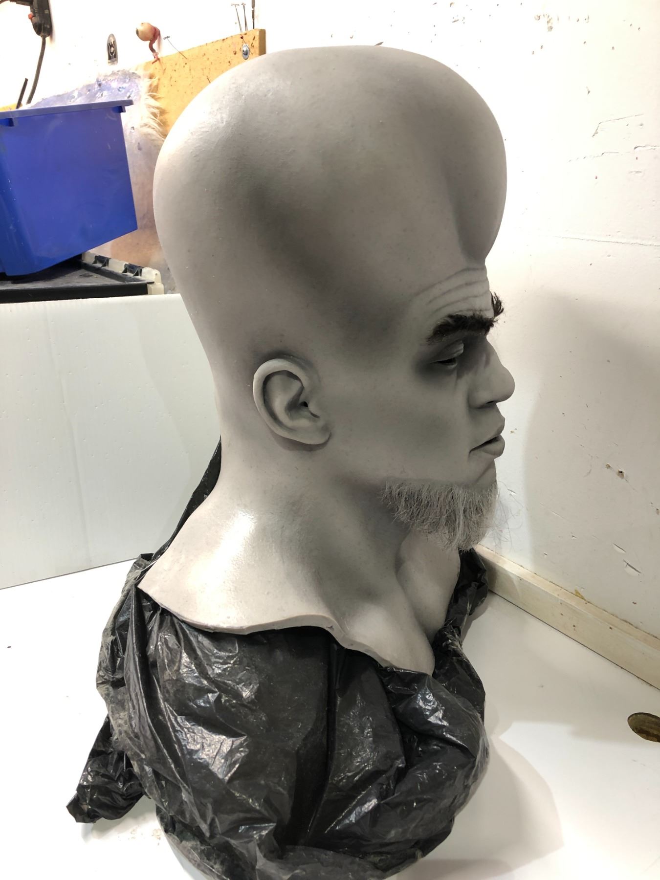 GREY ALIEN from the "Twilight Zone" Episodes "To Serve Man" - Grey Aliens made as a pullover mask - Worked on 3 episodes in 2019 - Platinum cure silicone -Lace Eyebrows and Beards