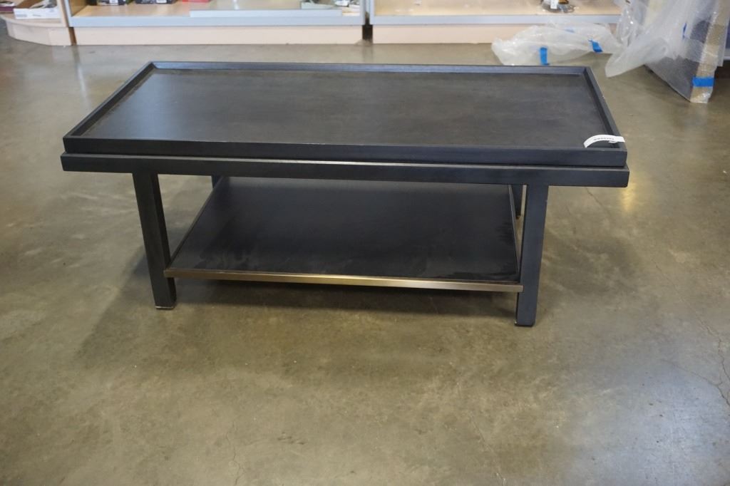 GREY COFFEE TABLE WITH BRASS ACCENTS