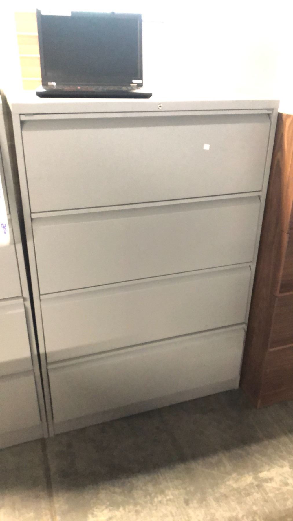 GREY HDL 4-DRAWER LATERAL FILE CABINET