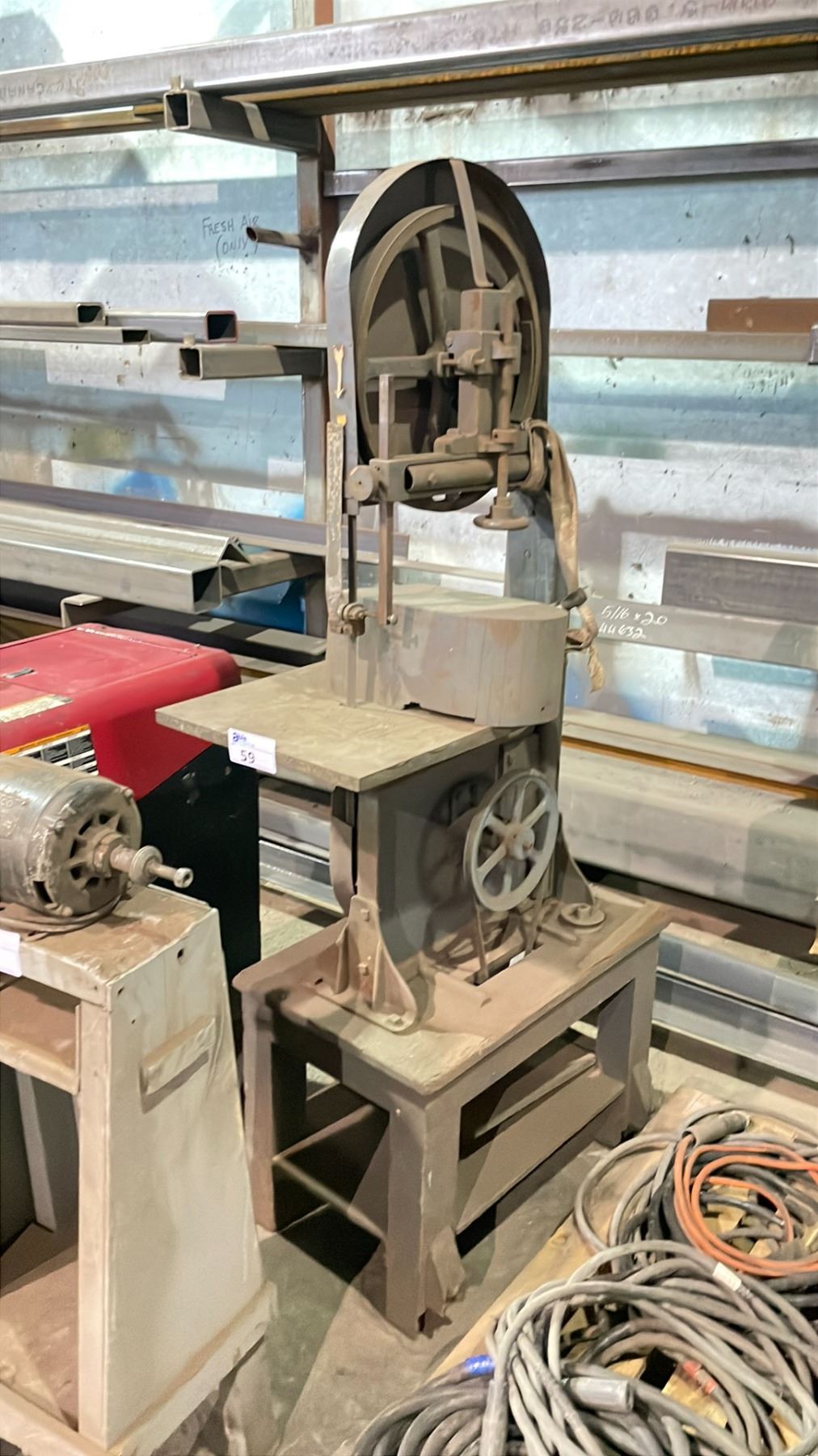 GREY INDUSTRIAL VERTICAL BANDSAW ON STAND