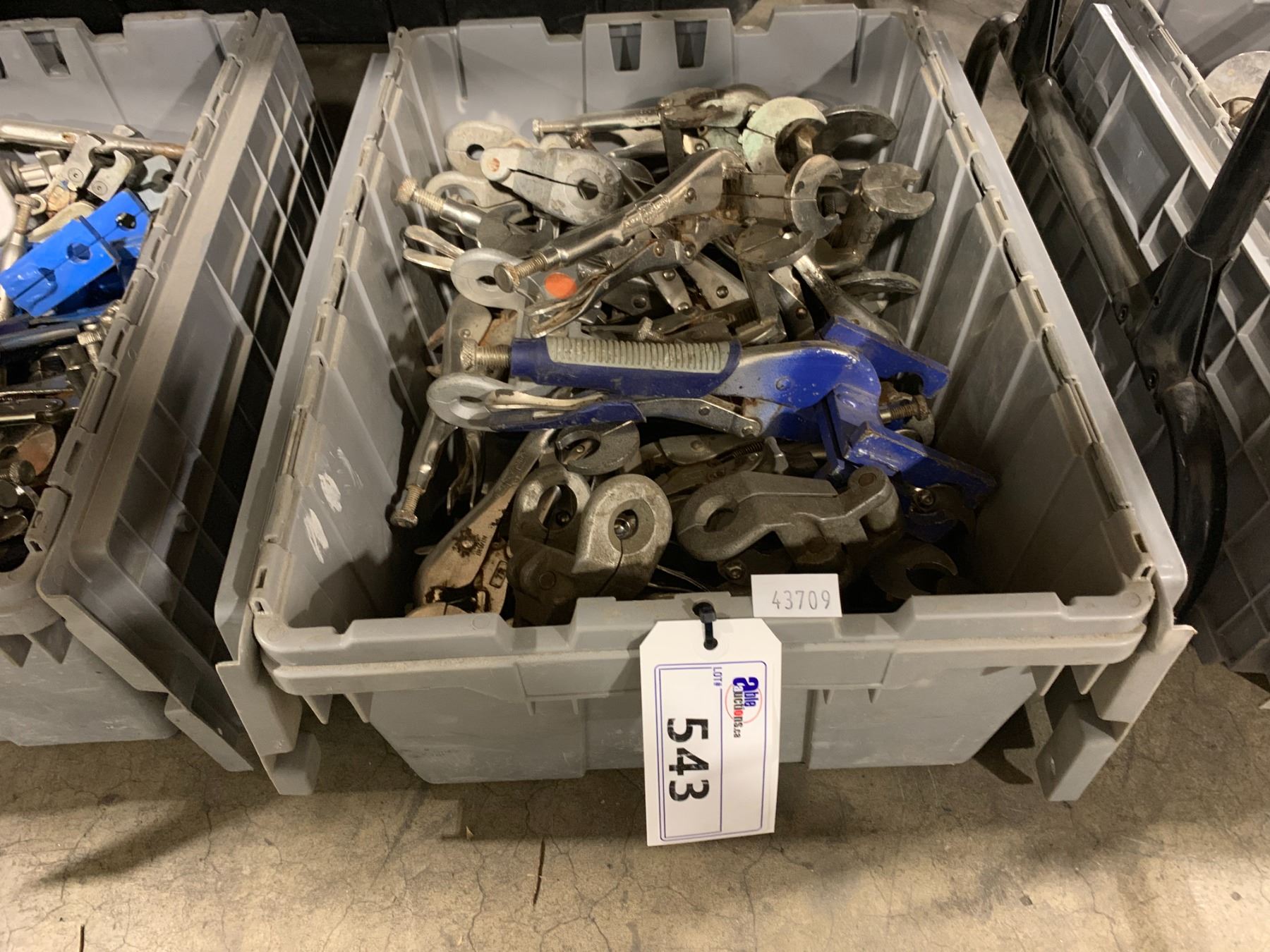 GREY PLASTIC BIN OF ASSORTED PIPE WORKING VICE GRIPS