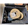 GREY PLASTIC CRATE OF ASSORTED REELS OF BRAIDED SAFETY / RIGGING CABLE *CRATE INCLUDED*