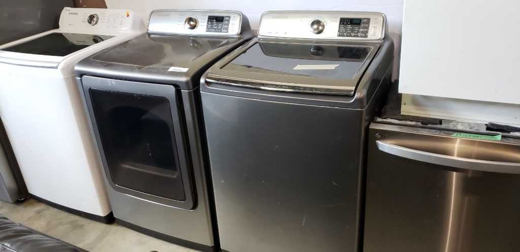 GREY SAMSUNG WASHER AND DRIER SMARTCARE VRT PLUS AND MULTISTEAM, MOISTURESENSOR, SMARTCARE - RUSTING ON INSIDE WASHER BUT WORKING