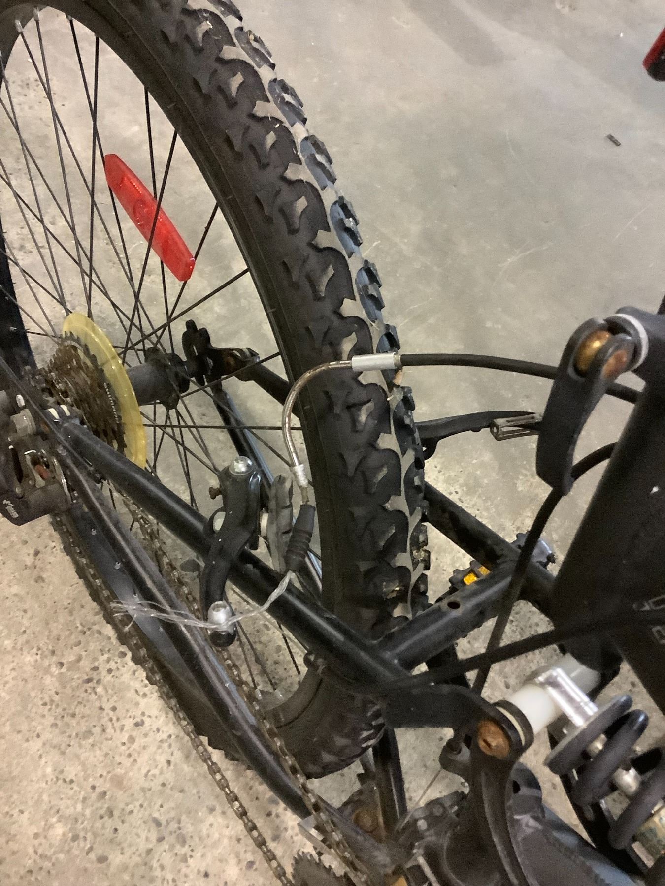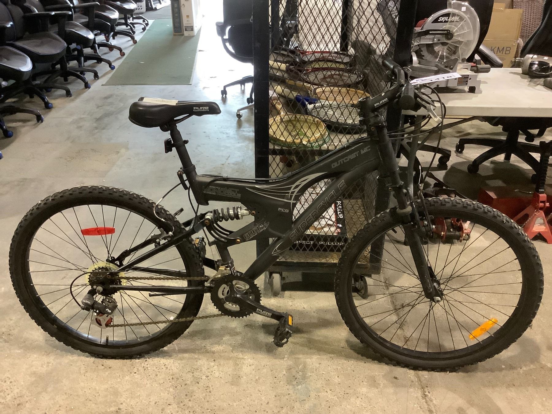 GREY SUPERCYCLE OUTCAST MC 18 SPEED BIKE WITH BRAKE DAMAGE