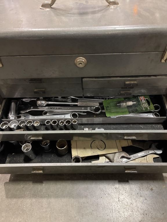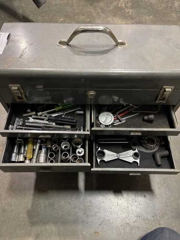 GREY TOOL BOX AND CONTENTS