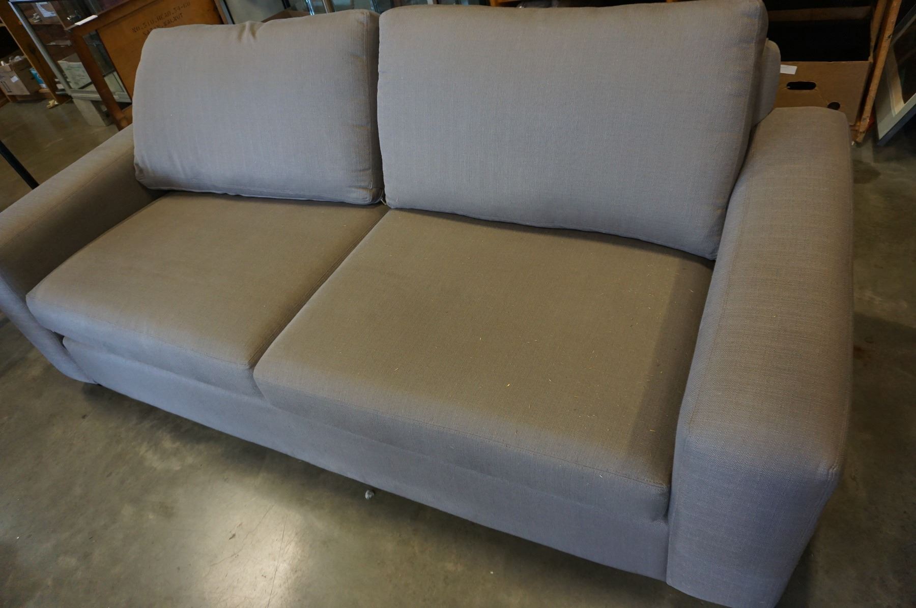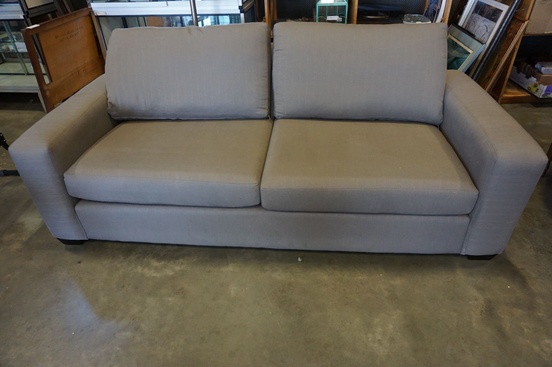 GREY UPHOLSTERED PILLOW BACK SOFA SO GOOD SOFA