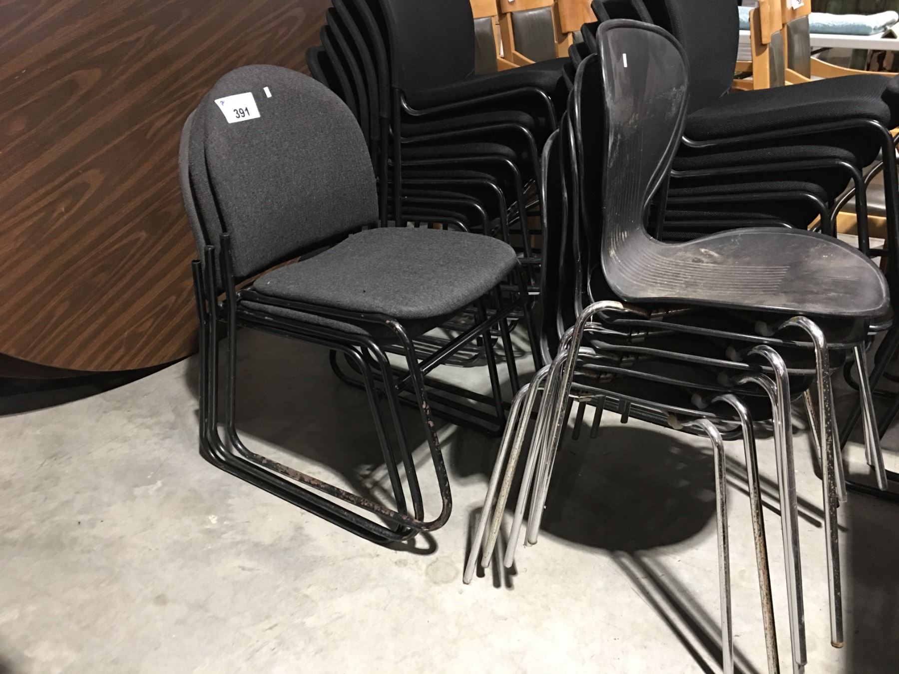 GROUP OF 2 SETS OF STACKING CHAIRS 3 FABRIC COVERED & 5 PLASTIC