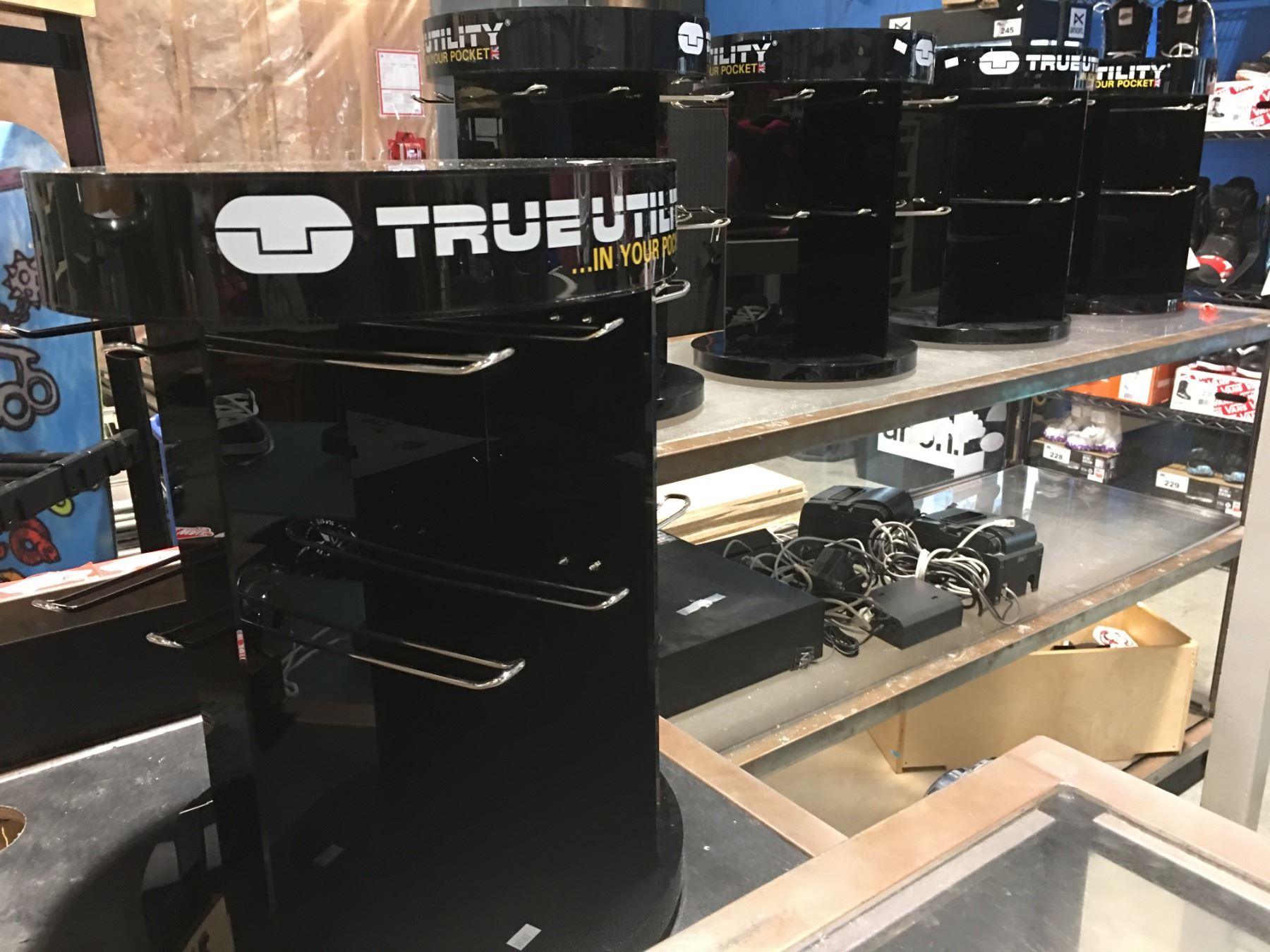 GROUP OF 5 TRUE BRANDS 16 HOOK ROTATING DISPLAY STAND