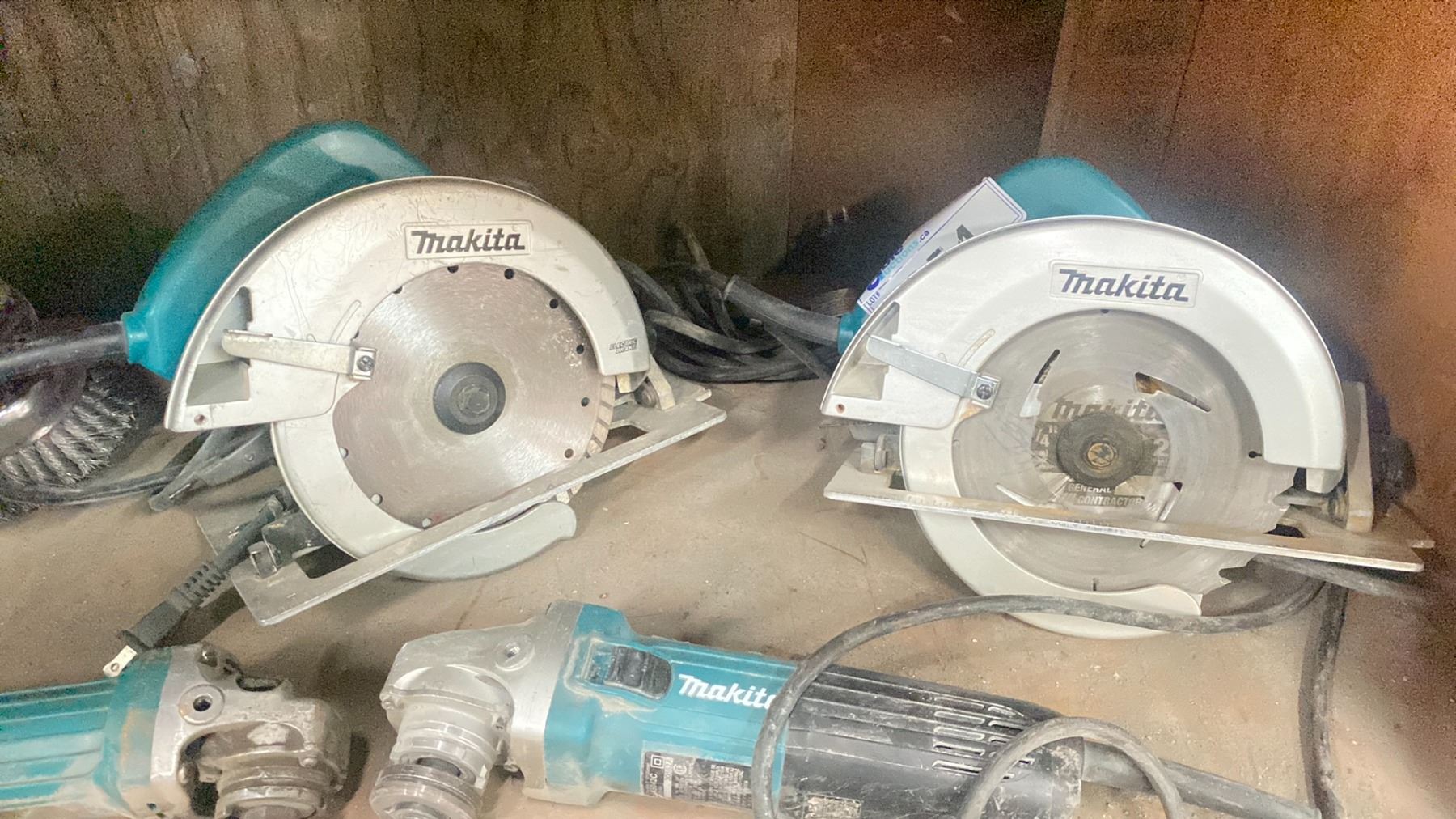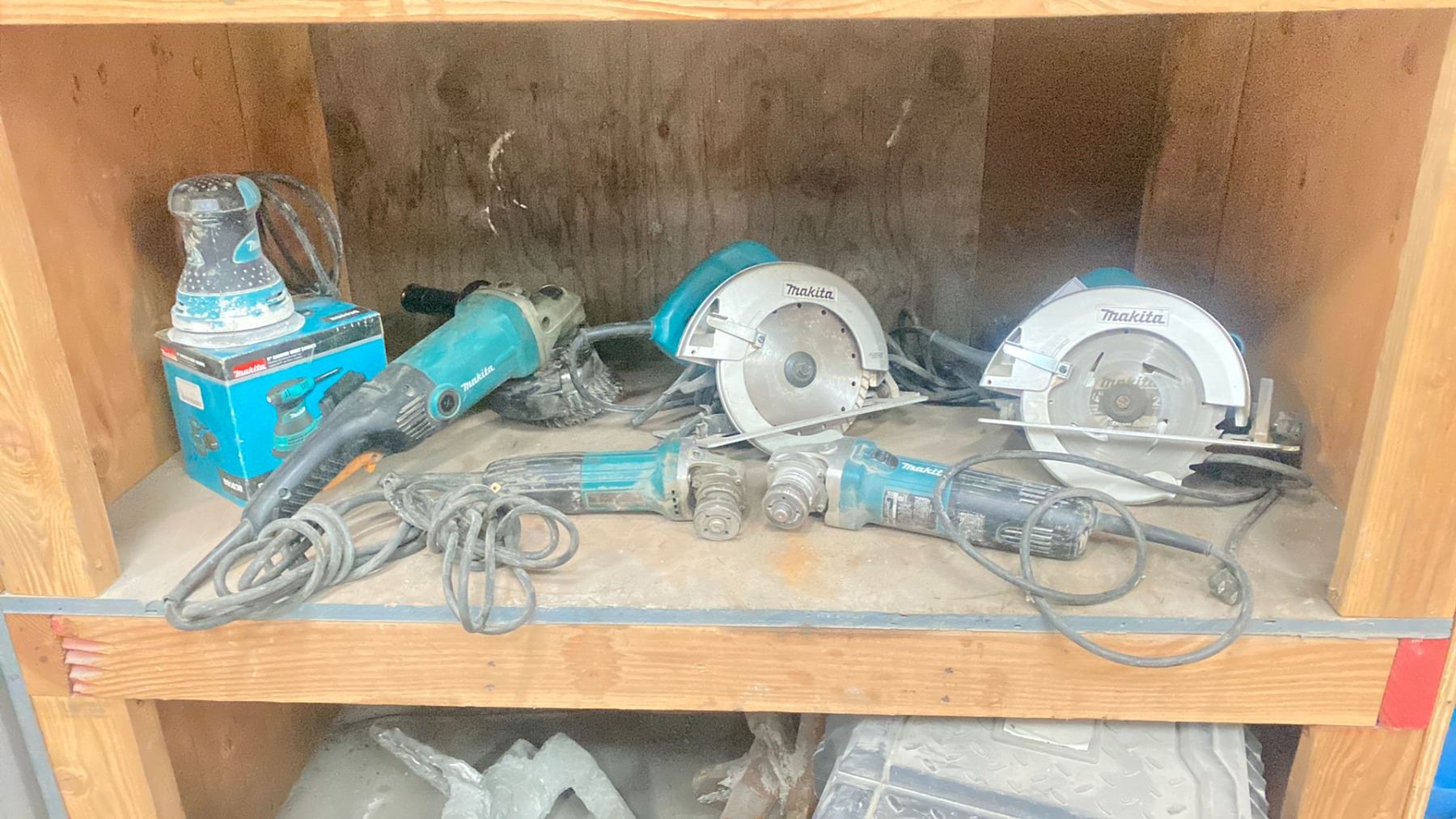 GROUP OF 6 MAKITA CORDED POWER TOOLS - 2 CIRCULAR SAWS, 3 GRINDERS AND 1 ORBITAL SANDER