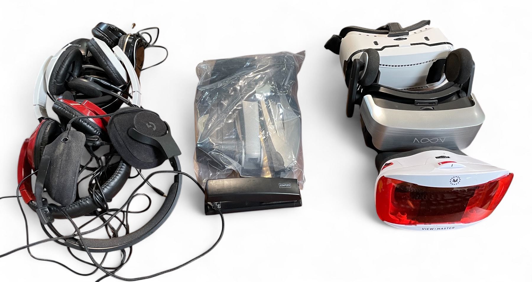 GRoup of 3 VR Viewers, Wired Gamer Headphones & More