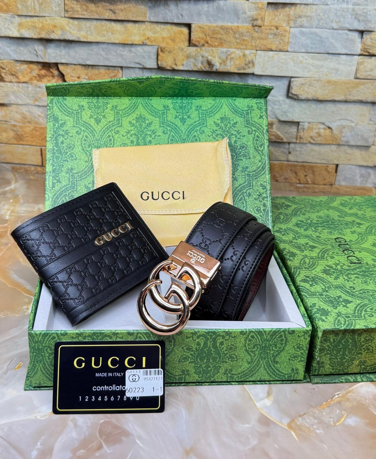 GUCCI BELT AND WALLET COMBO SET - HIGH QUALITY REPLICA, WITH BOX