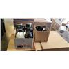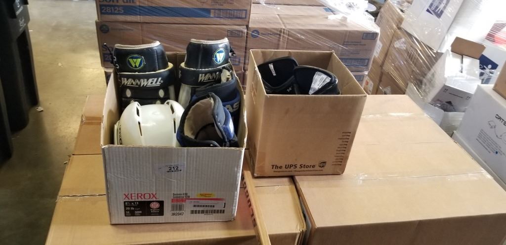 GUY LAFLEUR WOOD HOCKEY STICK AND 2 BOXES OF ASSORTED HOCKEY GLOVES AND GEAR
