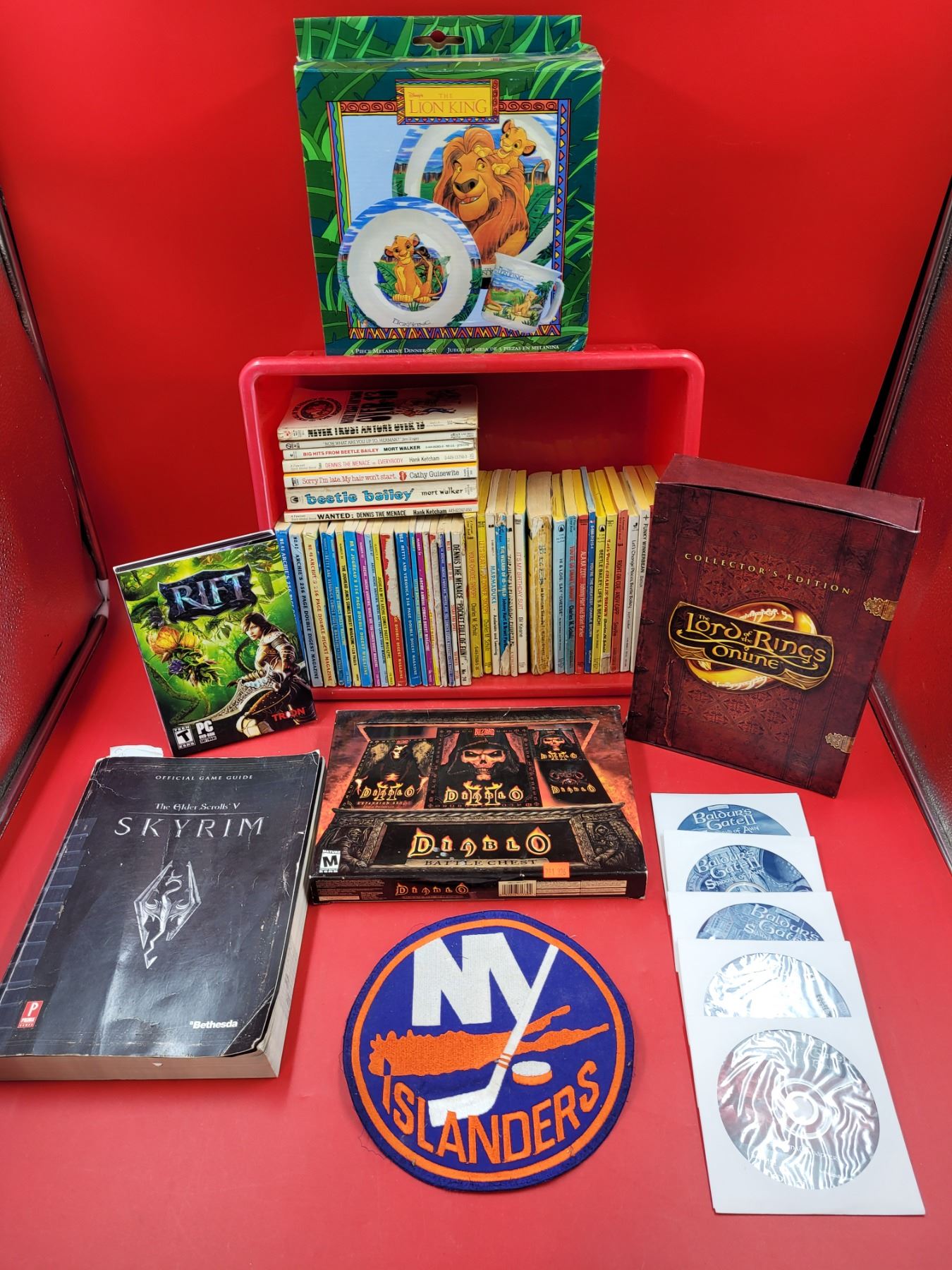 Game & Book Lot w/ Lord of The Rings Online, Skyrim Book, Baldur's Gate Discs, & More