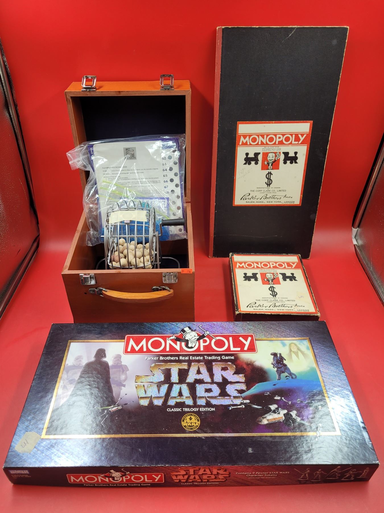Game Lot w/ VTG Monopoly, Bingo Cage, & Star Wars Monopoly