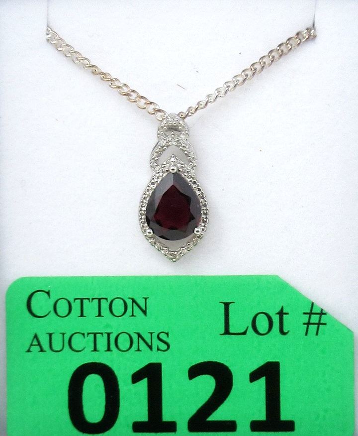 Pear cut garnet. Pendant is approximately 1" long. Includes chain. Retail value $310.