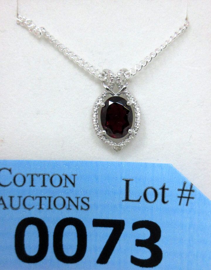 9 x 7 mm Oval cut garnet. Includes a chain. Retail value $310.