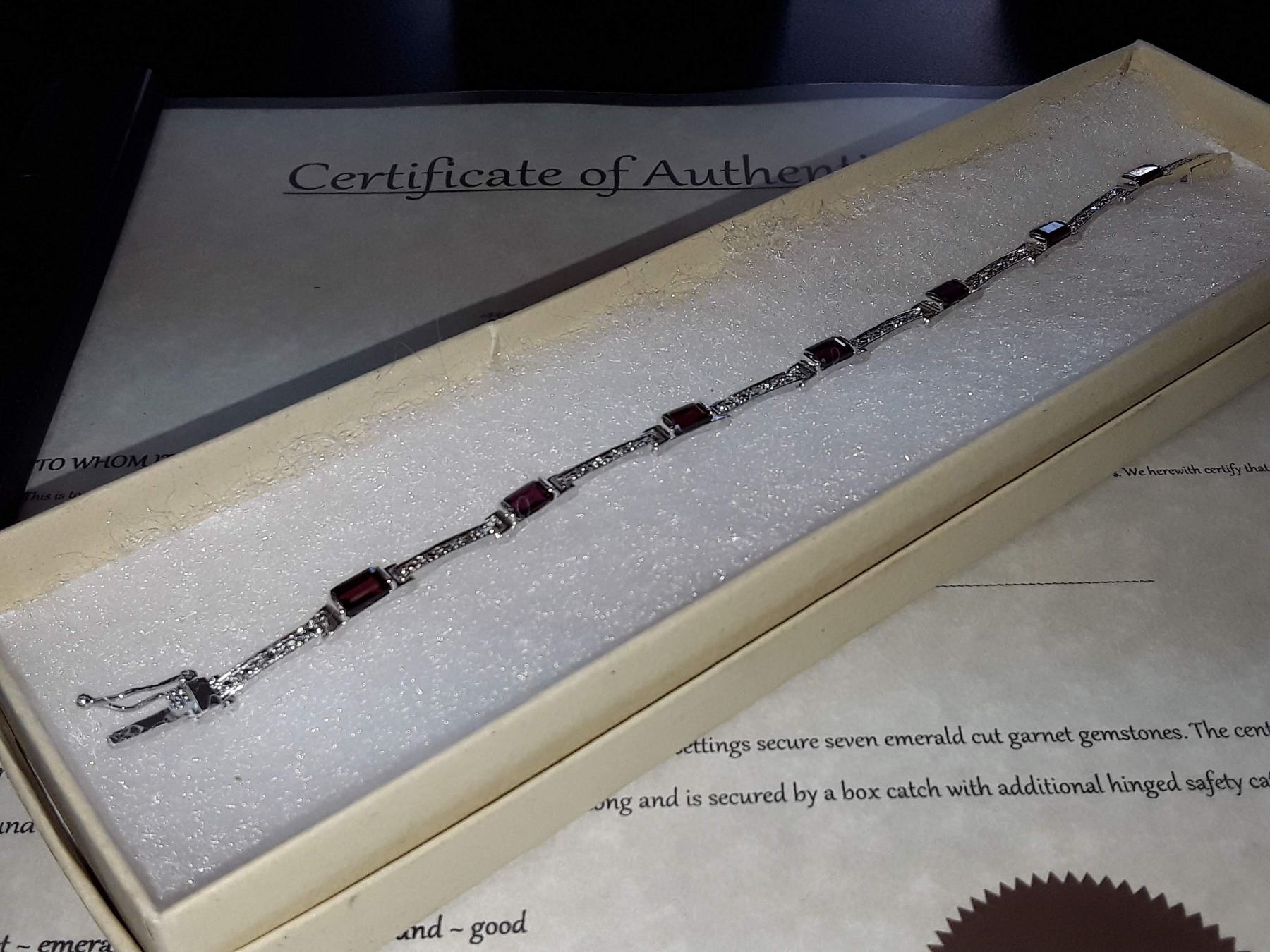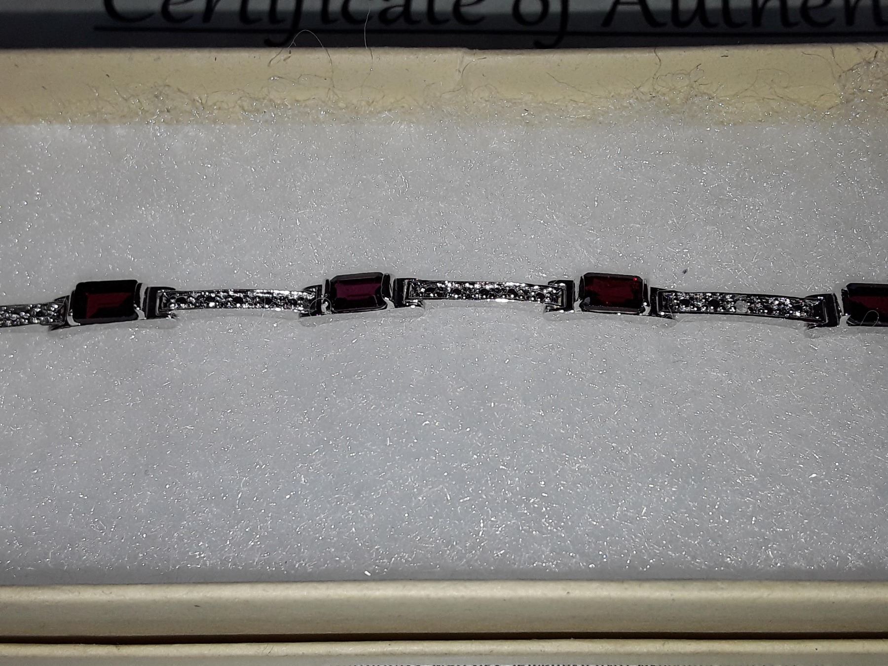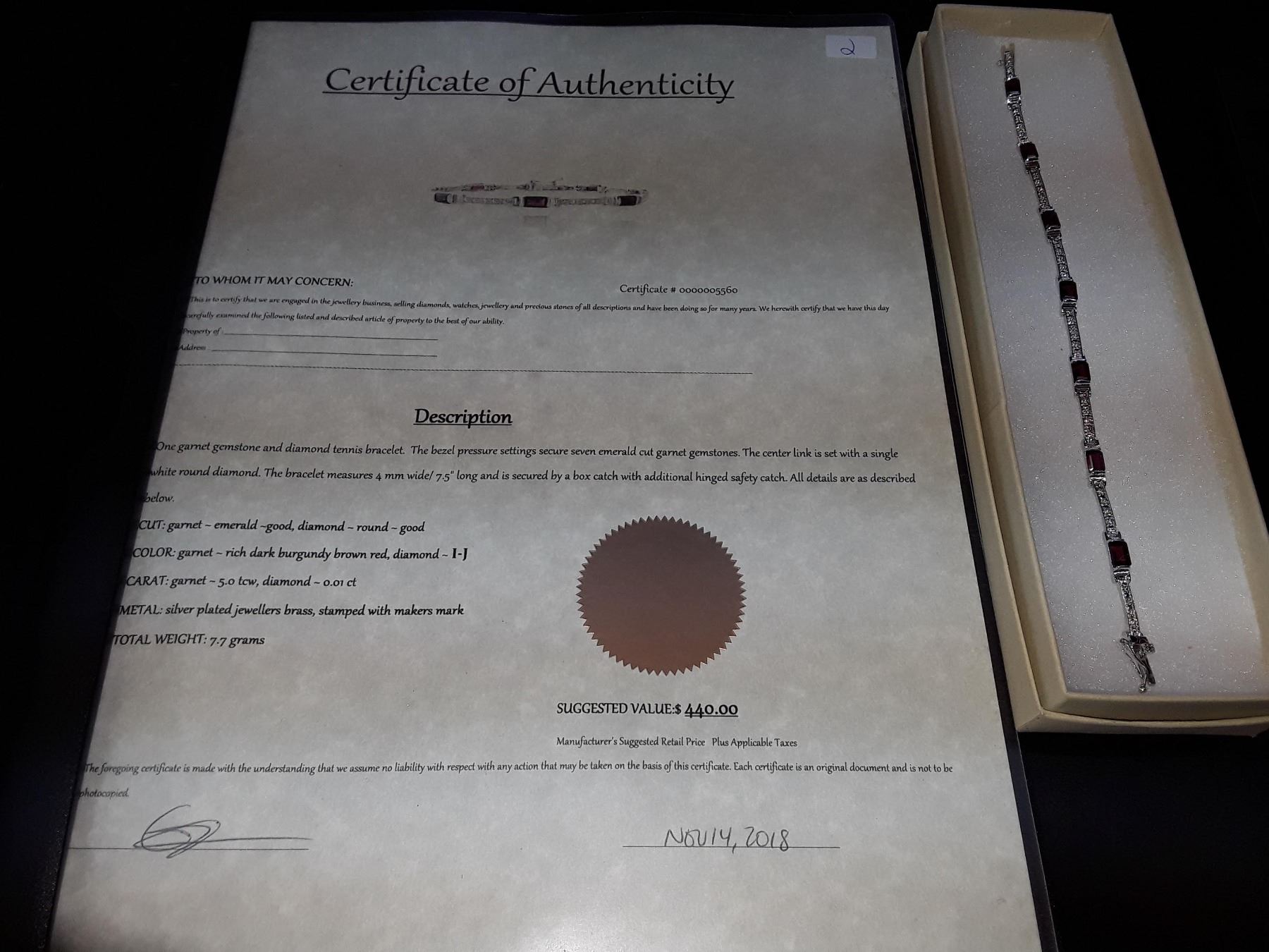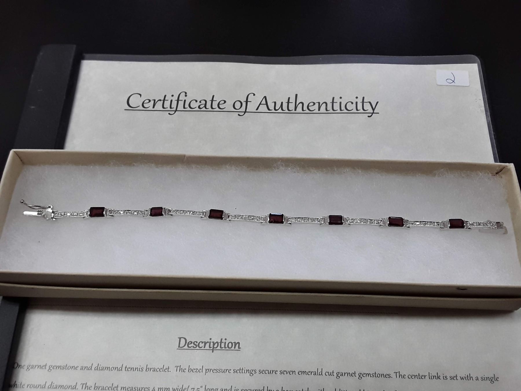 Garnet + Diamond Tennis Bracelet Suggested Value $440 With Certificate -- 17% Buyer Fee. Payment Processed through Live Auction World Saturday @ 11:15 ( Visa or Master Card ) pick up Saturday Before 3:00, or Tuesday 9:30 till 5:03