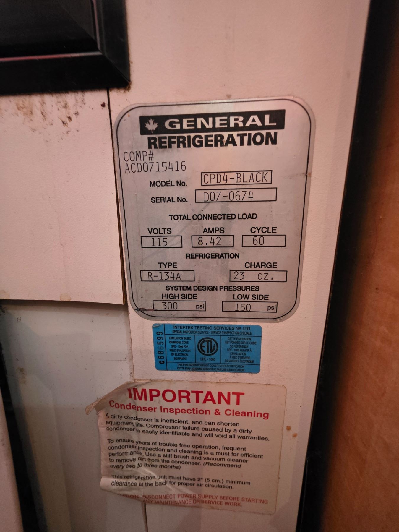 General Refrigeration - Refrigerated display cabinet - model: CPD4-Black (Auction Preview/Pickup Location: 19800 Lougheed Hwy, #310, Pitt Meadows, BC V3Y2W1)