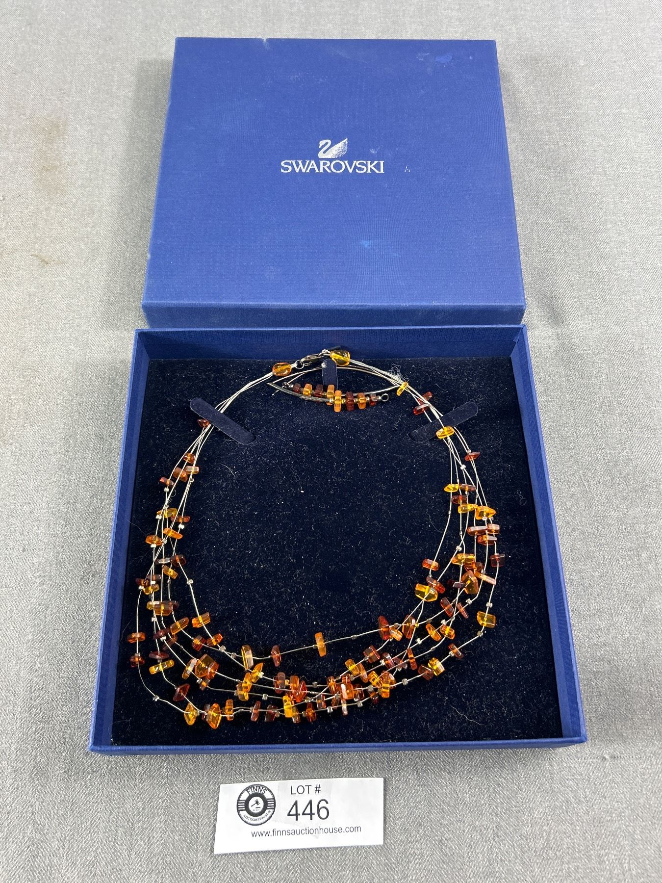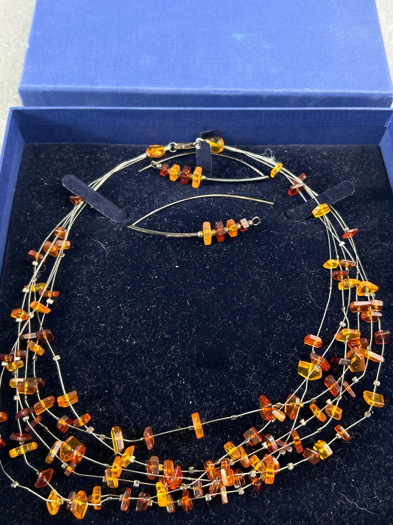 Genuine Amber Sterling Silver Necklace Earrings Set