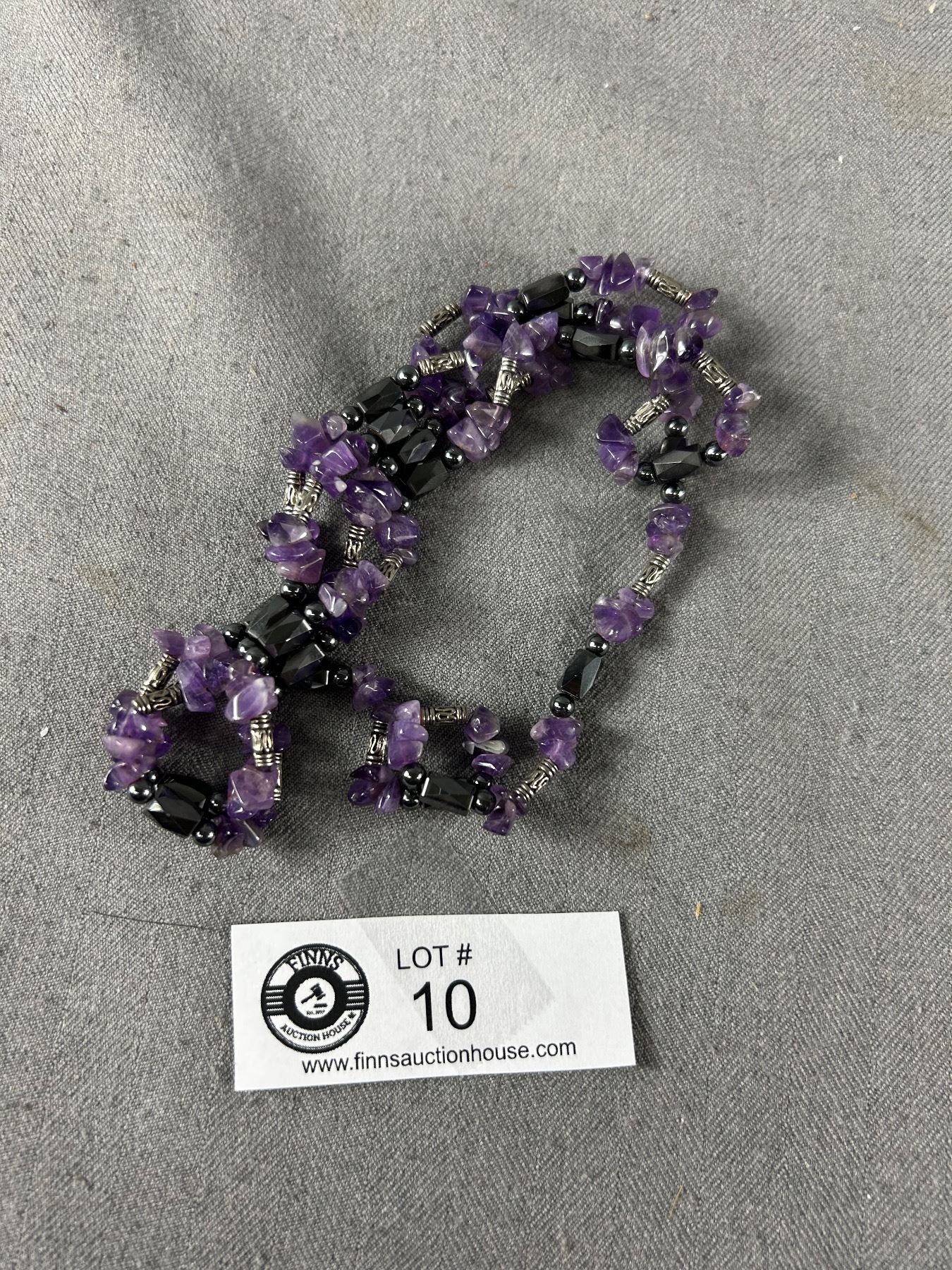 Genuine Amethyst Faceted Hematite Magnetic Necklace. Approx. 36" Long. No Clasp