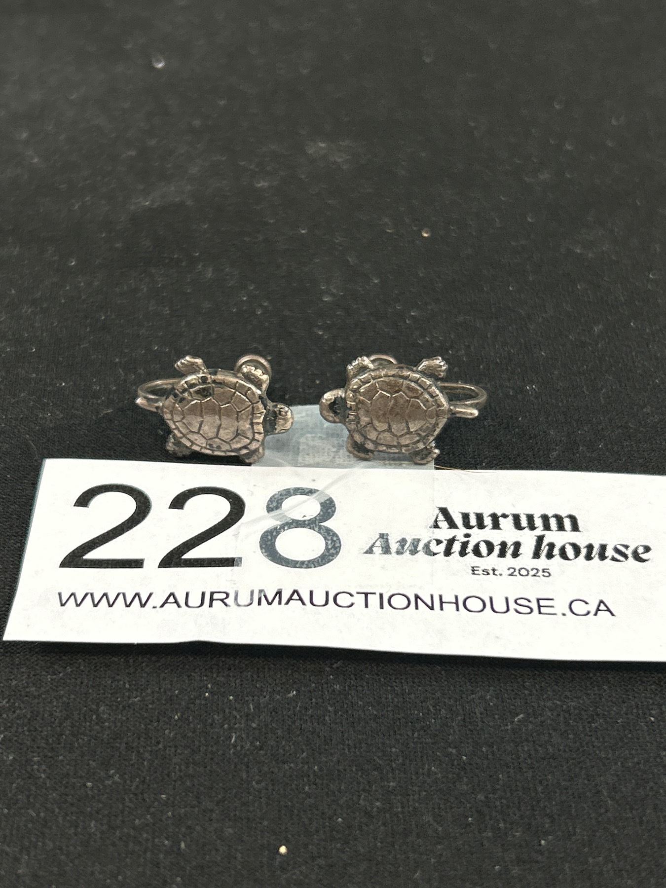 Genuine Antique Sterling Turtle Earrings Marked Sterling
