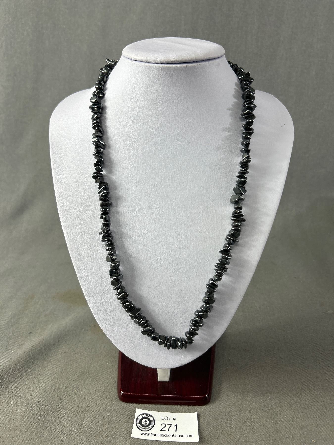 Genuine Black Alaska Diamond Stone or Hemitite Beads Tumbled Necklace