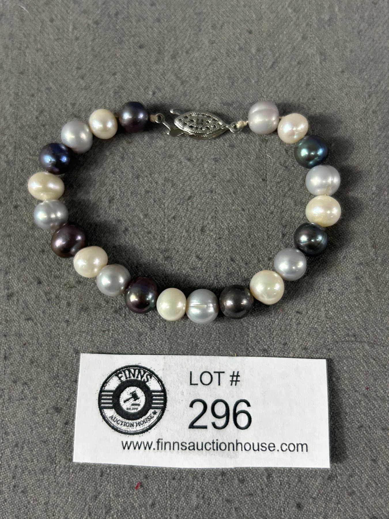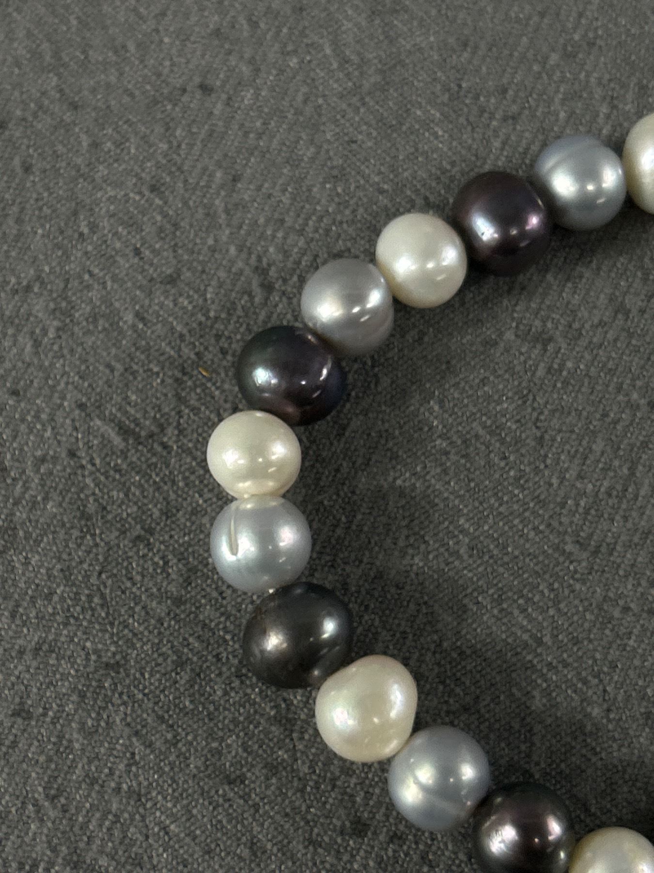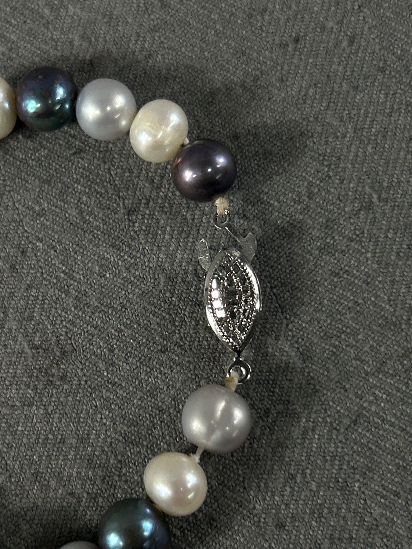 Genuine Black, Grey & White Pearls Bracelet w/ Original Silver Filligree Clasp