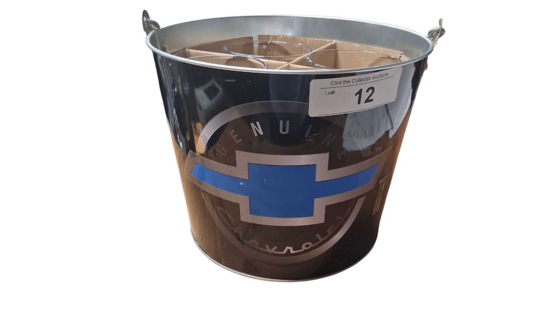 Genuine Chevrolet ice bucket, new with 4 glass mugs
