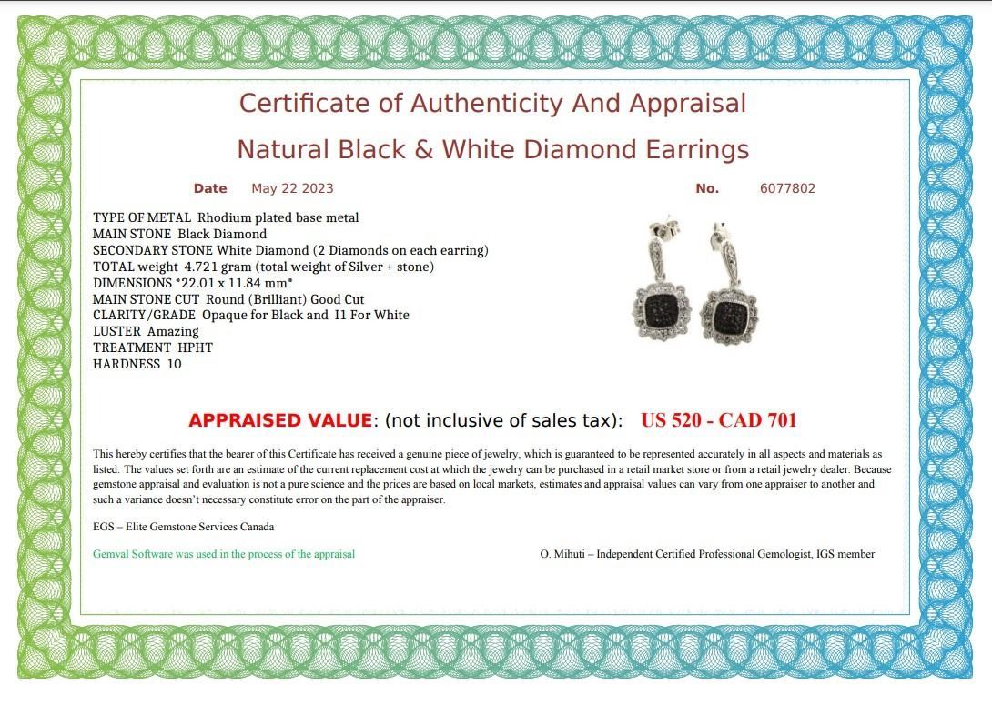 Genuine Elegant Natural Black & White Diamond Earrings - retail appraisal value $520 USD (w/ Certificate Of Authenticity Appraisal)