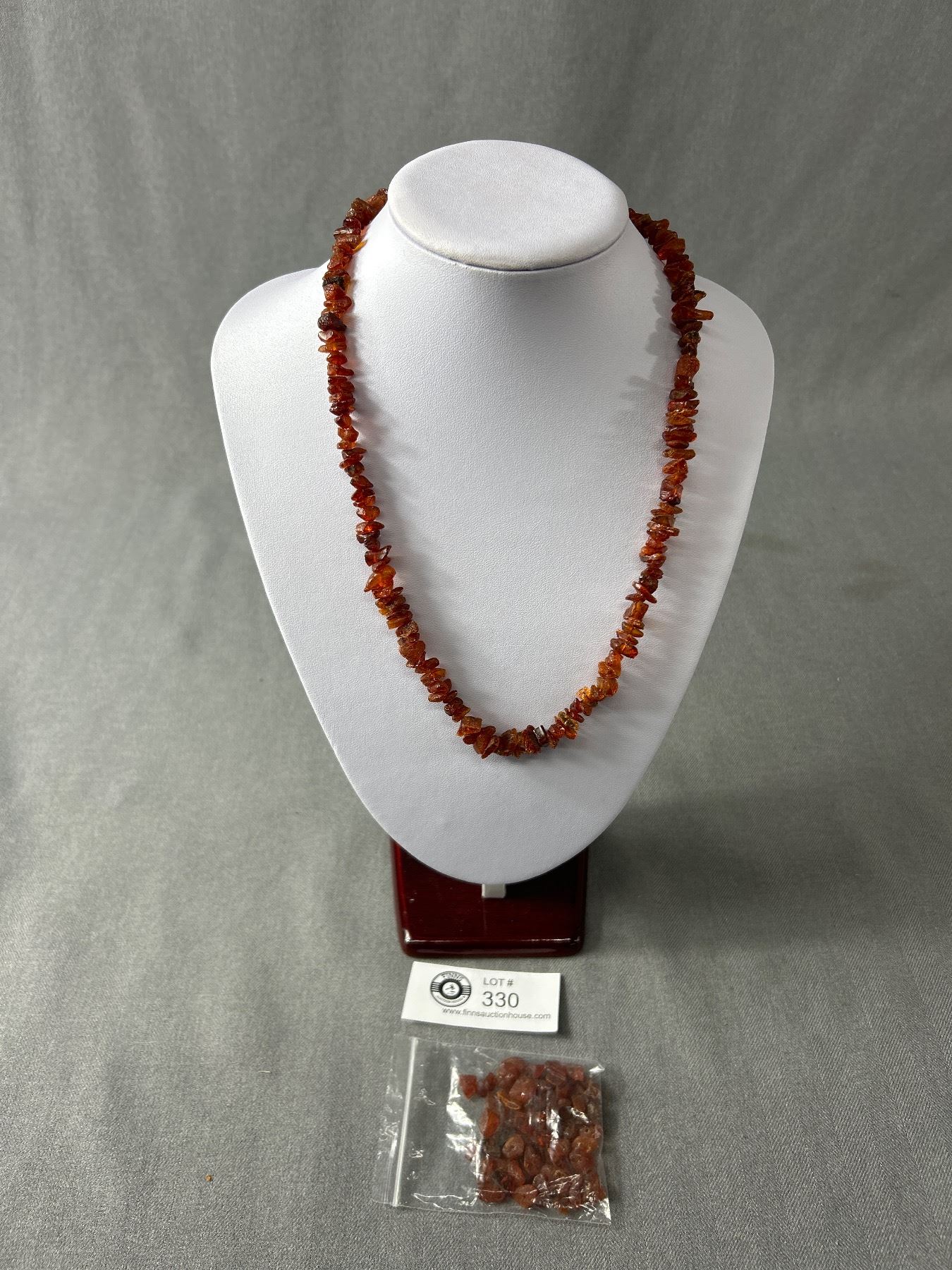 Genuine Natural Baltic Amber Necklace 23" L & Small Bag w/ extra Amber To Add On