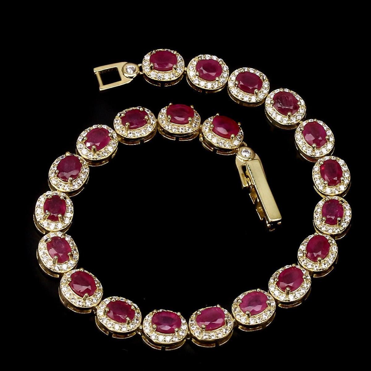 925 STERLING SILVER;PLATE....14K WHITE GOLD;LENGTH (INCHES)8MAIN STONERUBYOTHER GEMSCUBIC ZIRCONIATOTAL WEIGHT72.74 CT (TOTAL WEIGHT OF SILVER + STONE)DIMENSION* STONE 5.0 X 4.0 MM. * CZ 1.0 MM. * FACE BRACELET 175.0 X 7.0 MM.MAIN STONE SHAPEOVAL CUTMAIN STONE COLORTOP RICH RED PINKCLARITY/GRADETRANSPARENTLUSTERMESMERIZINGTREATMENTyes;ORIGINMADAGASCARHARDNESS9.0