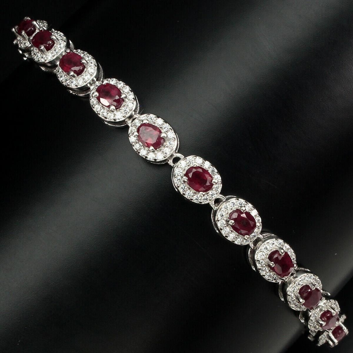 925 STERLING SILVERPLATE14K WHITE GOLDRING SIZE/LENGTH (INCHES)7MAIN STONERUBYOTHER GEMSCUBIC ZIRCONIATOTAL WEIGHT56.61 CT (TOTAL WEIGHT OF SILVER + STONE)DIMENSION* STONE 4.0 X 3.0 MM. * CZ 1.0 MM. * FACE BRACELET 167.0 X 6.0 MM.MAIN STONE SHAPEOVAL CUT;MAIN STONE COLOR BLOOD RED;TREATMENT - Yes;ORIGINMADAGASCAR;HARDNESS9.0;
