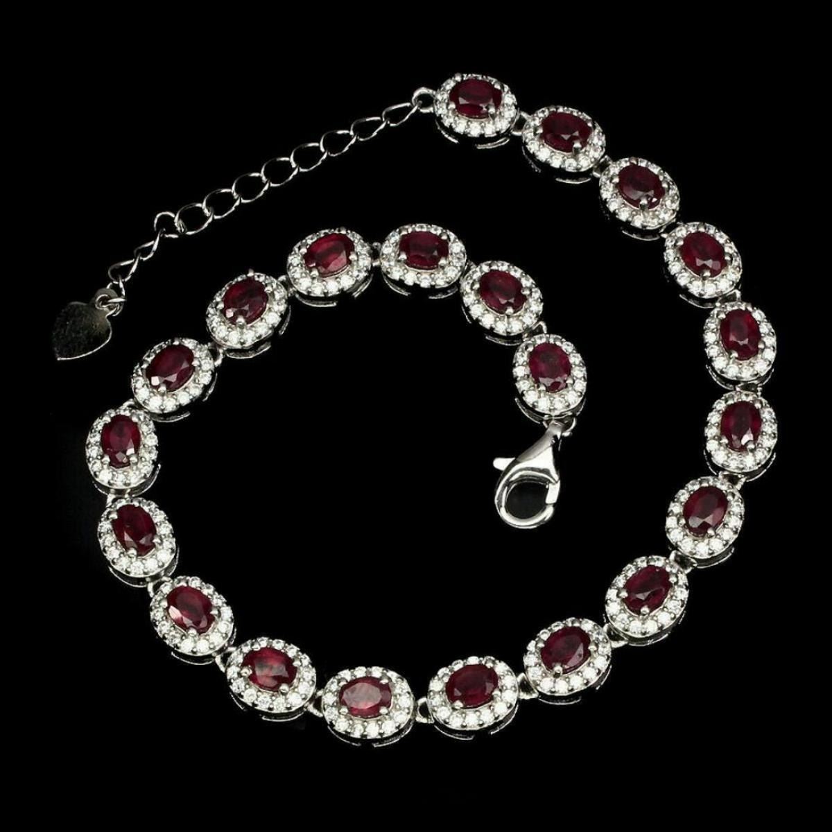 925 STERLING SILVERPLATE14K WHITE GOLDRING SIZE/LENGTH (INCHES)7MAIN STONERUBYOTHER GEMSCUBIC ZIRCONIATOTAL WEIGHT56.61 CT (TOTAL WEIGHT OF SILVER + STONE)DIMENSION* STONE 4.0 X 3.0 MM. * CZ 1.0 MM. * FACE BRACELET 167.0 X 6.0 MM.MAIN STONE SHAPEOVAL CUT;MAIN STONE COLOR BLOOD RED;TREATMENT - Yes;ORIGINMADAGASCAR;HARDNESS9.0;