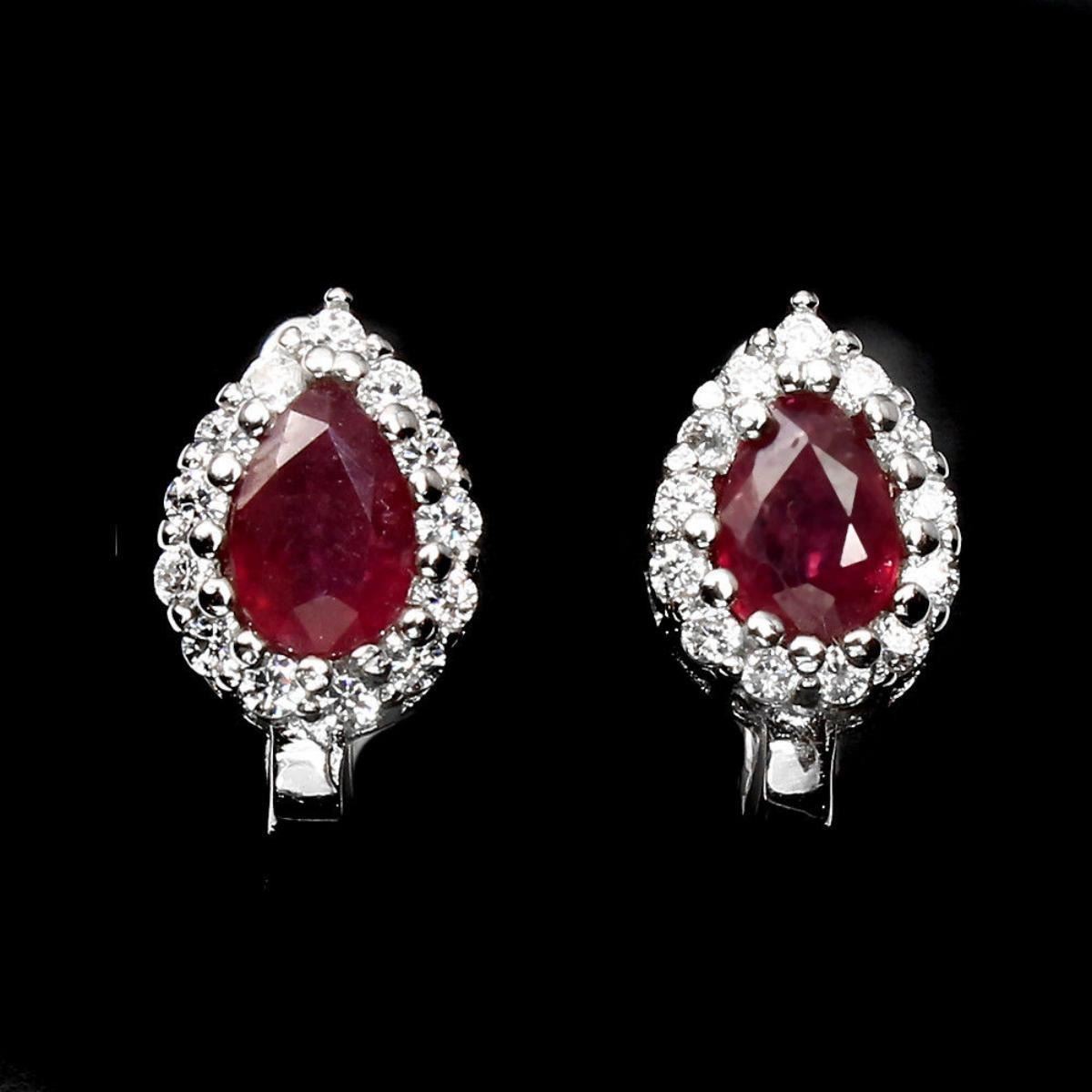 925 STERLING SILVER;PLATE.....14K WHITE GOLD;MAIN STONERUBYOTHER GEMSCUBIC ZIRCONIATOTAL WEIGHT16.23 CT (TOTAL WEIGHT OF SILVER + STONE)DIMENSION* STONE 6.0 X 4.0 MM. * CZ 1.0 MM. * FACE EARRINGS 13.0 X 7.0 MM.MAIN STONE SHAPEPEAR CUTMAIN STONE COLORTOP BLOOD REDCLARITY/GRADETRANSPARENTLUSTERELEGANTTREATMENT- yes;ORIGINMADAGASCARHARDNESS9.0