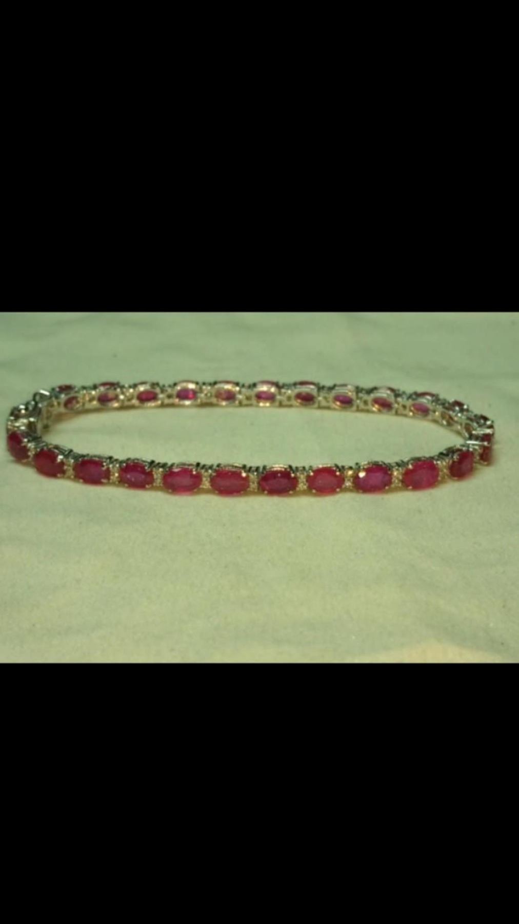 14k solid white gold 11.8 grams......Genuine earth mined rubies....18.5 Carats ..color - Red.....shape oval( Treated) ...Natural Diamonds 0.60 Carats...Length - 7 Inches