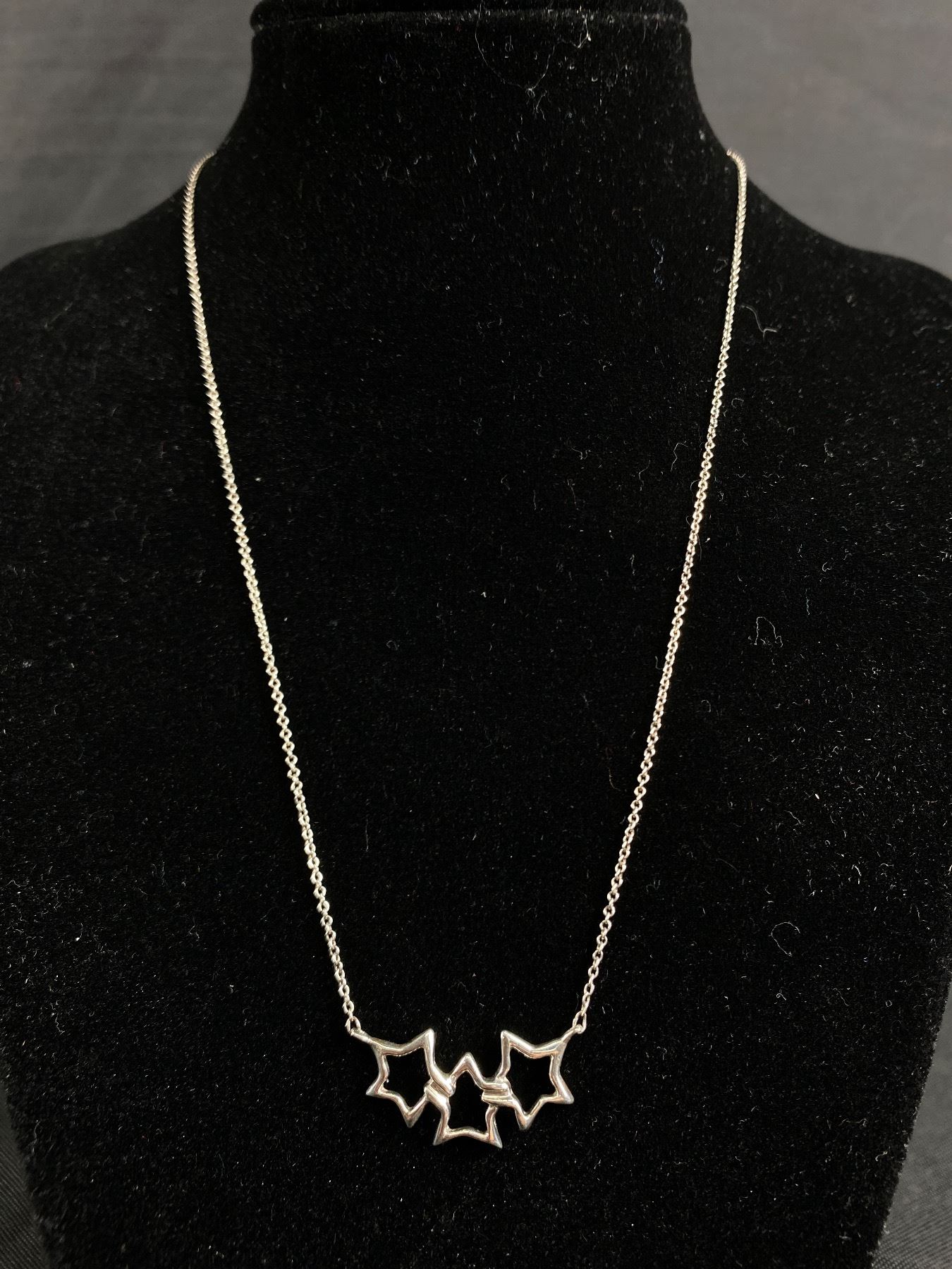 Genuine Tiffany 925 Sterling Silver 3 Stars Necklace