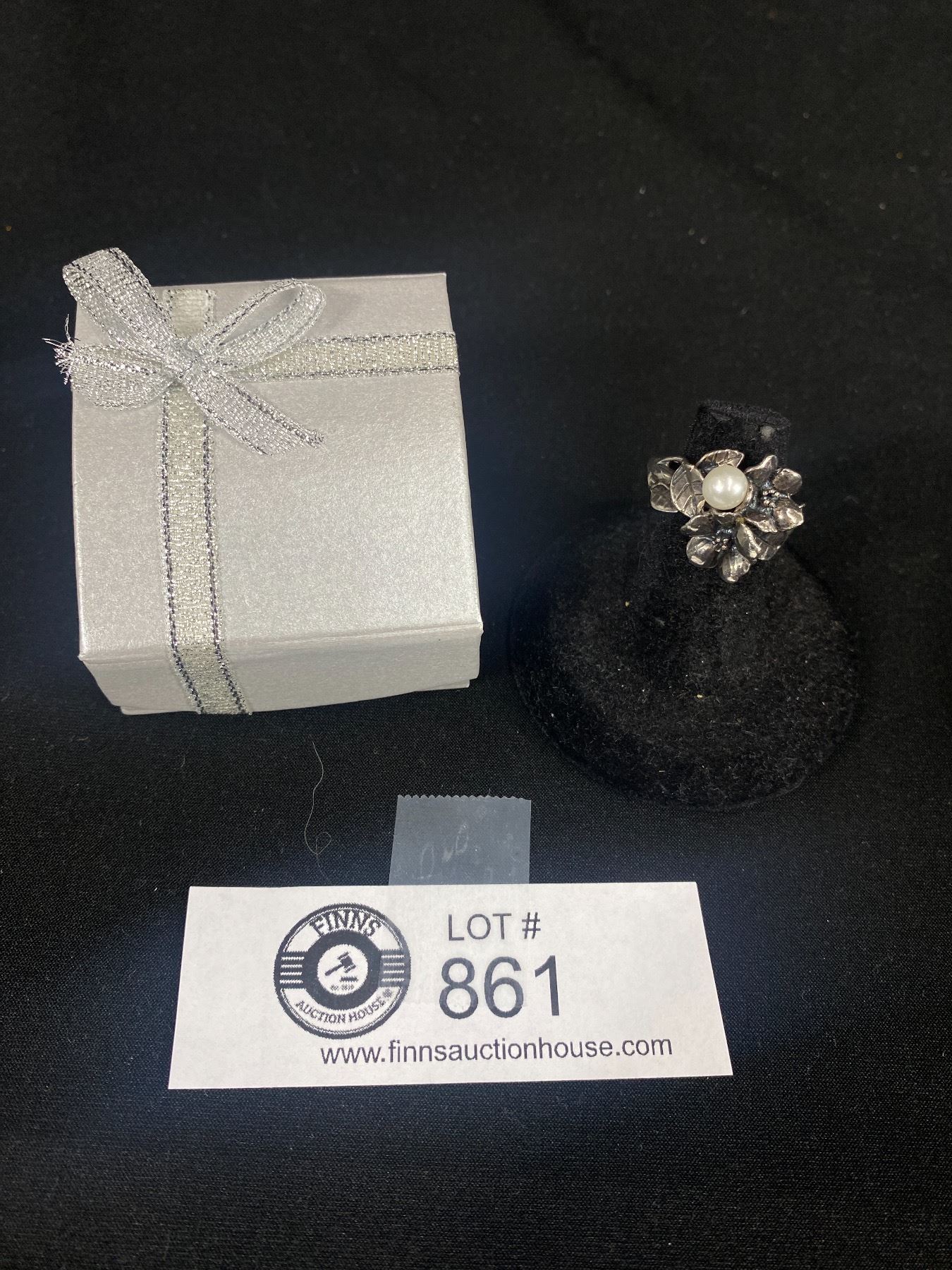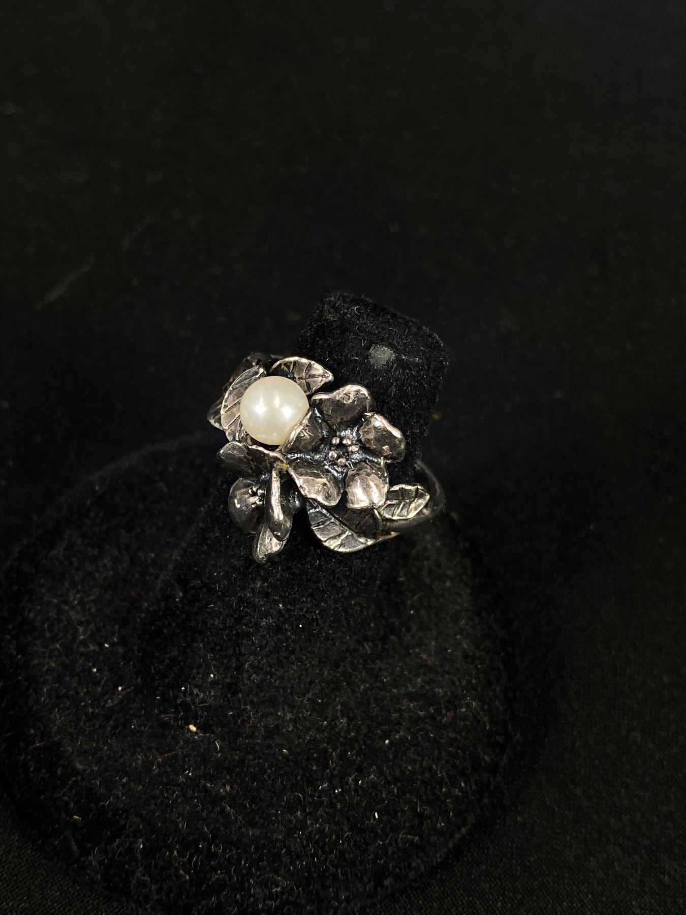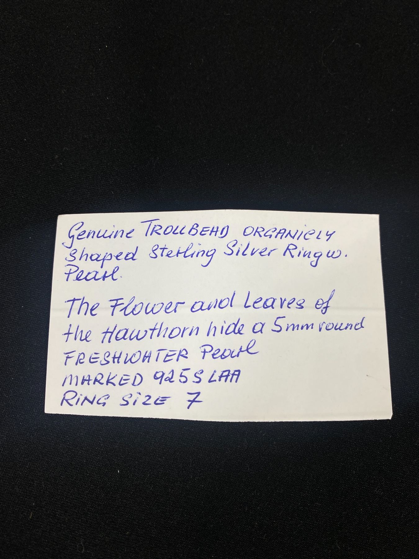 Genuine Trollbead Organically Shaped Sterling Silver Ring with Freshwater Pearl Marked 925S LAA Size 7